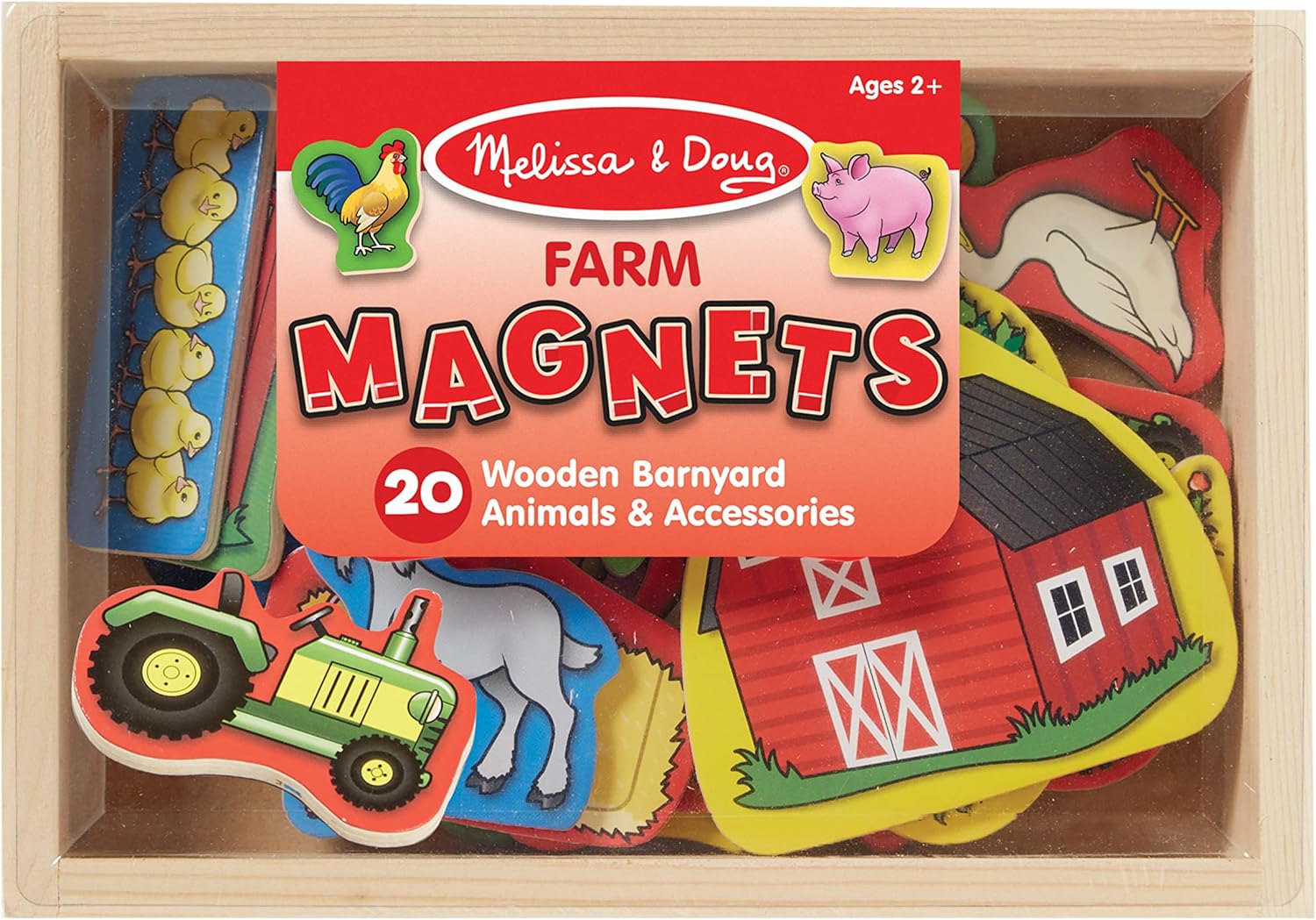 These Melissa & Doug Wooden Magnets have a sturdy construction and are suitable for use on a variety of magnetic surfaces including the fridge, a whiteboard or blackboard and other metallic surfaces. The 20 magnets in this pack come in a wooden storage case so that you can easily pack them away.