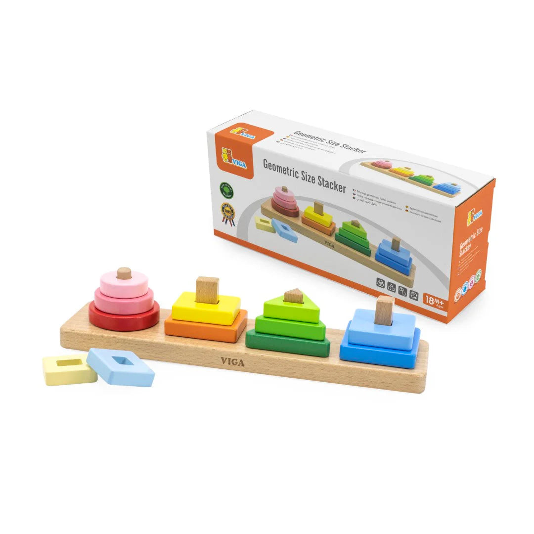 Viga Geometric Size Stacker is a great exercise for your child's fine motor skills. This develops problem-solving skills as well as hand-eye coordination and spatial awareness.