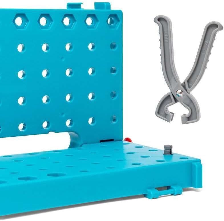 Hammer, screw, twist and tighten with the Work Bench from BRIO Builder. This construction toy is a great introduction for children looking to get to grips with construction play. The flexible design of this working bench means children can practice using tools like hammers, wrenches, screwdrivers and more in a creative and open-ended way. And once you're done playing, simply fold down the bench and convert it into a handy toolbox for smart storage.