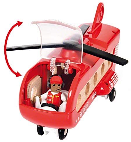 There’s no cooler way to fly than by helicopter. Behind the pilot in the new Cargo Transport Helicopter toy, the cargo bay is ready to carry some serious weight – even two fully loaded wagons. With everything in place, spin the rotor of your BRIO helicopter, take off and soar high above your BRIO World.