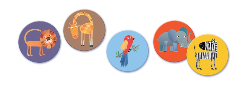 Memory Jungle is a classic picture matching and memory game much loved by younger children. Little ones will have fun trying to find and match the fun Jungle animal pairs. Play is essential to a child's development and Djeco's artistic and inventive approach to their collection of educational games and toys makes them a sound choice when buying for children.