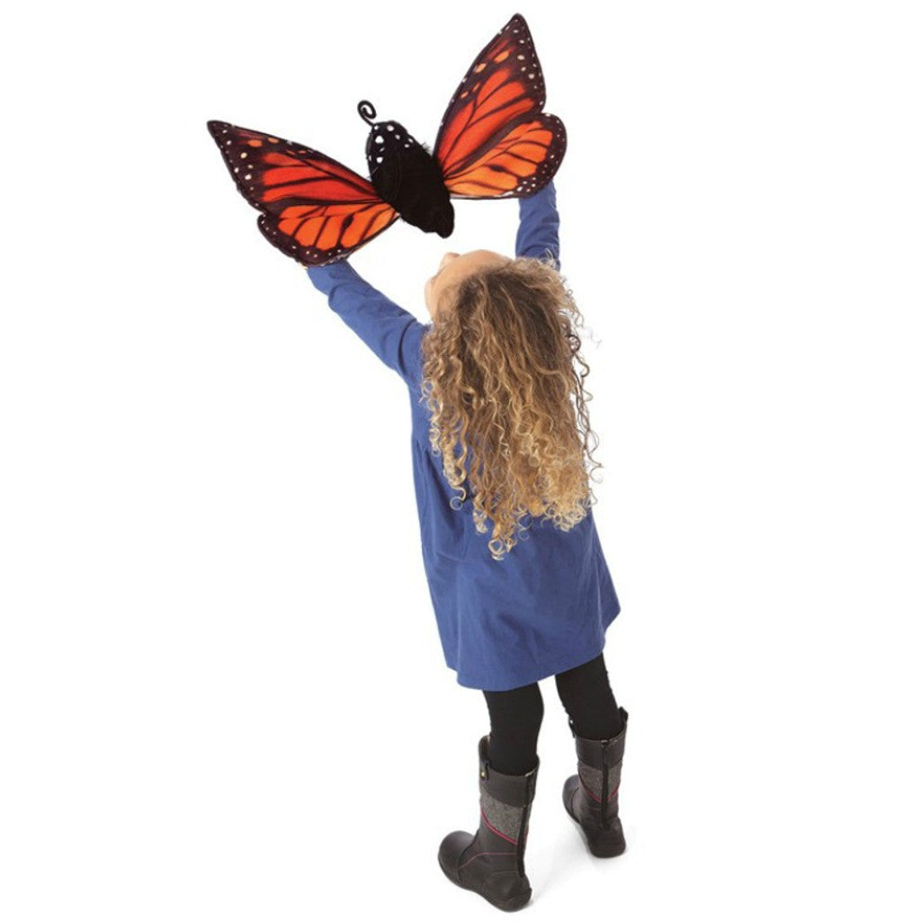 The Folkmanis Monarch Life Cycle Hand Puppet is a fun and interactive way to learn about the transformation of a beautiful butterfly. The process begins with a plump yellow, white and black striped caterpillar, which then zips and fold into a silky green chrysalis cocoon bag, out of which then emerges the impressive orange and black monarch butterfly. Once the cycle is complete, you can insert your hands and flutter her beautiful wings and go on a magical garden adventure.