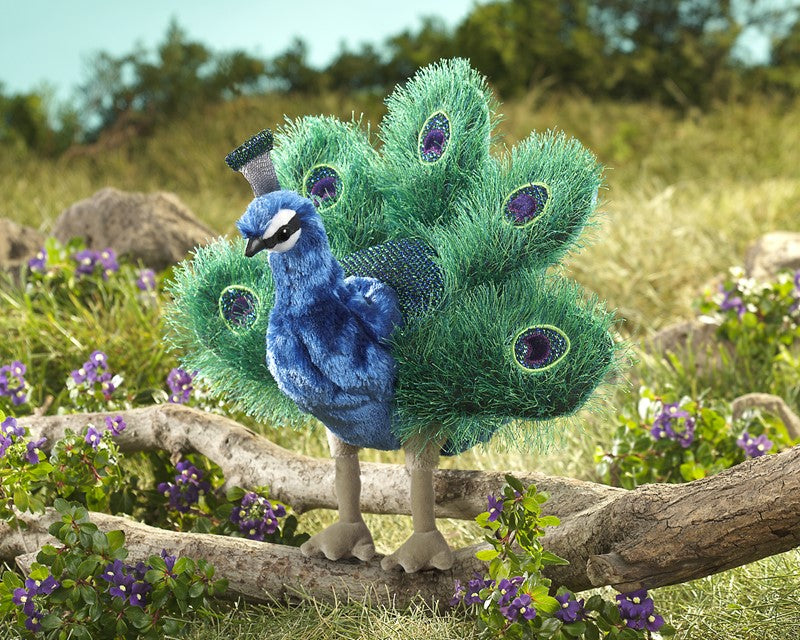 The full-sized Folkmanis Peacock has won multiple awards. Now with the same fabulous colors highlighting the male bird, the 10-inch SMALL PEACOCK is a wonderful new addition to any toy box. Easy to use by simply placing an open hand in the "feathers" like a glove and wiggling the finger, puppet movement is endless. Amazing detail and unlimited play value make Folkmanis proud to present this Small Peacock.