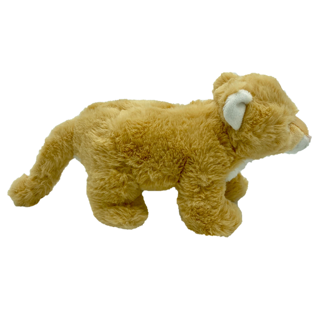 This loveable lioness, made out of 100% recycled plastic (from filling to fabric), is a high quality, environmentally friendly Queen of the Jungle sure to delight all! Available in two sizes, Della is made to the highest of quality and standards, featuring captivatingly soft fur, this cutie is certain to join you on many a safari adventure! With her adorable, embroidered features and environmentally friendly beads in her feet to keep her standing, Della makes for the perfect companion for all ages to enjoy.