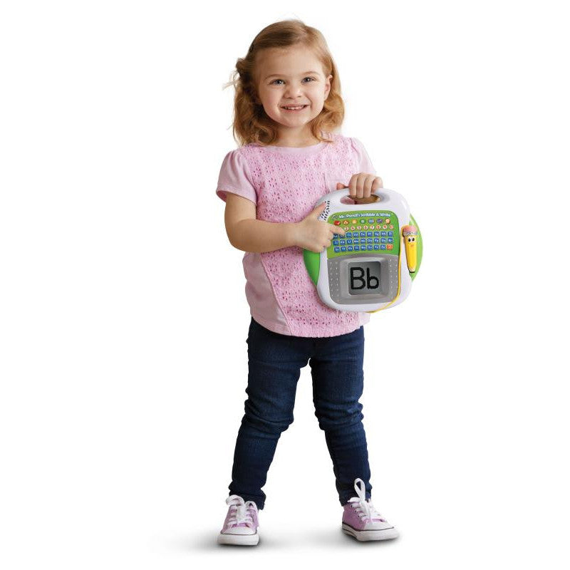 Learn to write letters, numbers and more with Mr. Pencil’s Scribble & Write®! With the help of the friendly Mr. Pencil, explore six activities that introduce writing, drawing and spelling.