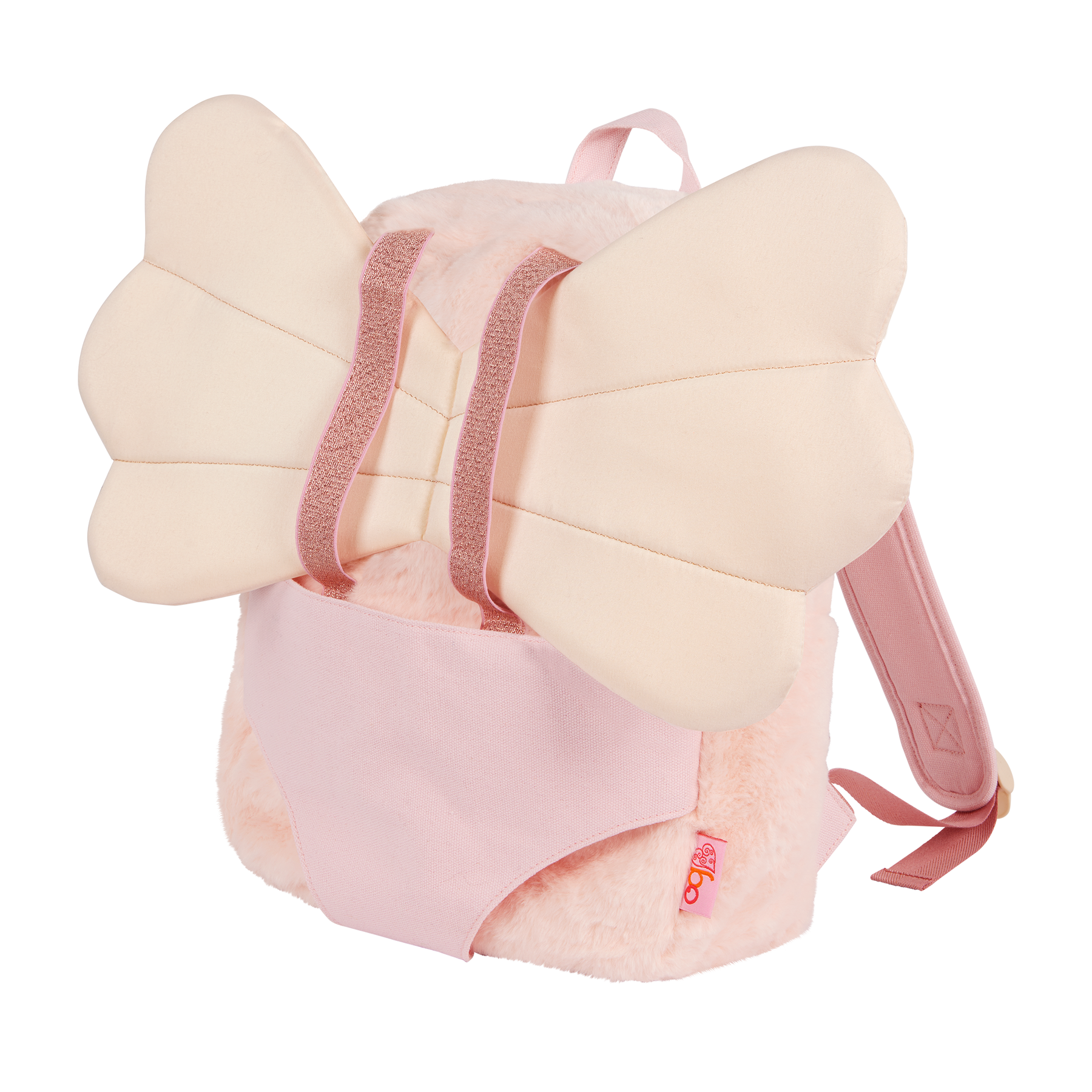 Kids and their favourite 46 cm doll can soar into fun adventures together with the Our Generation Be Magical Doll Carrier Backpack! This whimsical doll carrier is made of soft, pink faux fur with golden stitching and cute fairy wings for an enchanting style. Little travelers will have plenty of room to pack books, snacks, and more essentials for a day out. Plus, it has interior pockets to organize pencils, pens, and other small belongings. For added comfort, the carrying straps easily adjust for the perfect fit. And the outer harness with sparkly straps will keep your doll bestie by your side on every trip. This Our Generation doll carrier makes a great gift for kids ages 3 years and up, spreading smiles and sparkle on every fun-filled journey. Fits most 18-inch dolls. Our Generation dolls sold separately.