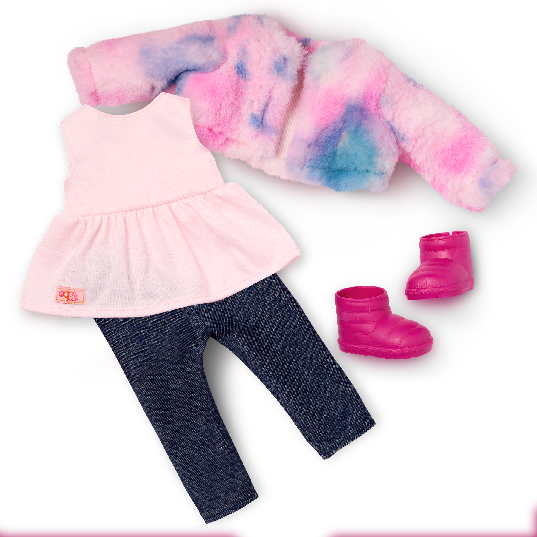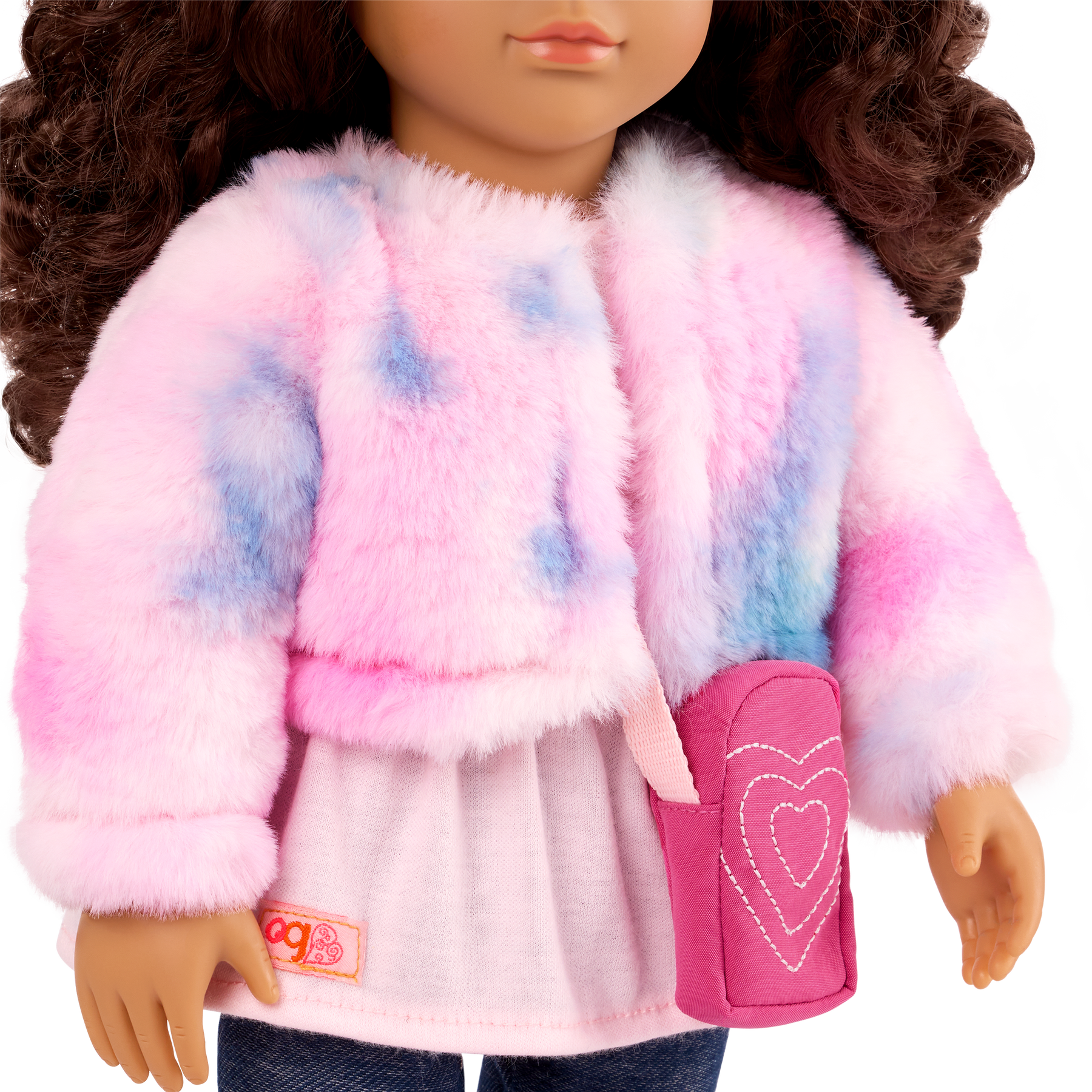 Our Generation doll and pet duos inspire double the friendship fun for kids, especially animal lovers! Ines' pup Jojo is a 15 cm Pomeranian, featuring an adorable design with its cute pointy ears, soft plush fur that welcomes hugs, and mouth playfully open to give it a lively and friendly expression. It also makes Jojo more interactive, appearing eager to join in the playtime and be a loyal pal. Bring Jojo out and about with the dog leash that really clips to the collar, and pack extra puppy toys and treats inside Ines' crossbody bag for on-the-go storytelling! Ines has a huggable soft body and lifelike features to delight doll fans. Her dark-brown eyes open and close, and her wavy, dark-brown hair is fun to style in many ways. She wears denim-style leggings, a pink top, and a tie-dye jacket. For kids who love dress-up, her outfit has easy-open closures to quickly put on and remove. So they can mix, match, and dream up even more fun looks on any journey! Our Generation 46 cm dolls make a great gift for kids ages 3+ (small parts), encouraging them to create their own unique stories.