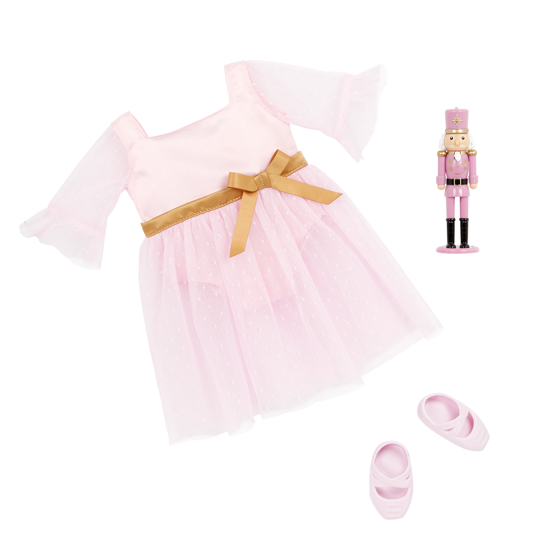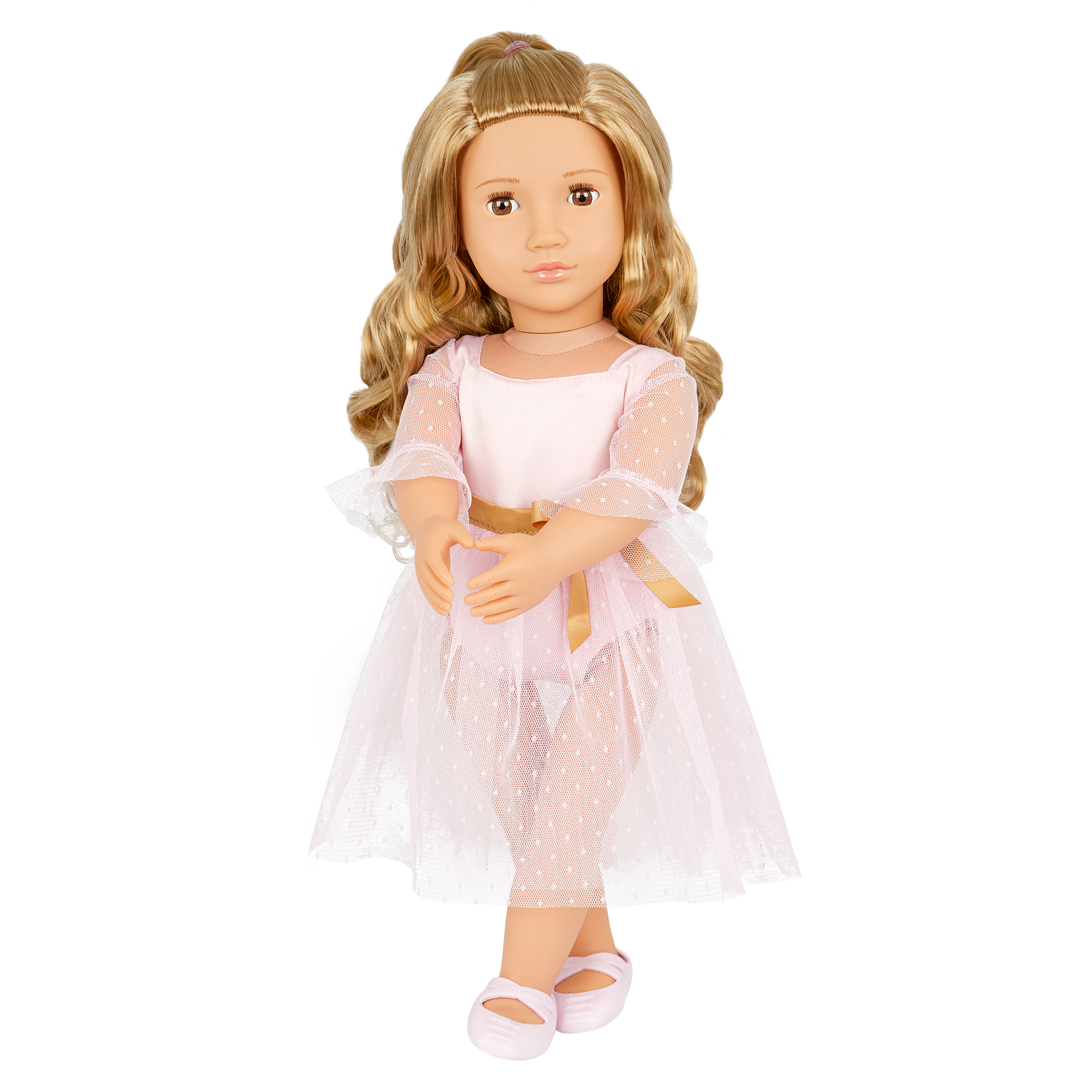 Bring festive fun to every magical story with Our Generation doll Natasha! Inspired by the beloved character in The Nutcracker, this 46 cm ballerina doll shines in a lovely pink ballet dress with dotted tulle accents and a golden waist bow. Plus, she comes with her own nutcracker doll—just like in the classic tale! Natasha's huggable soft body and lifelike features will delight doll fans during playtime. She has beautiful brown eyes that open and close with wavy blonde hair to style in many ways. When it's time for dress-up, her outfit has easy-open closures to quickly put on and remove. So you can mix, match, and create more stylish looks on any adventure! Our Generation dolls make a great gift for kids ages 3+ (small parts), encouraging them to imagine their own unique stories.