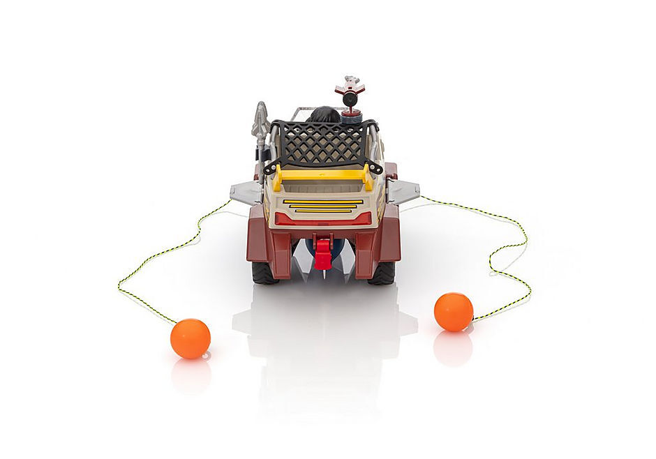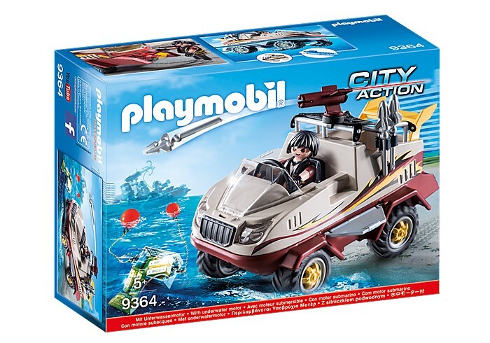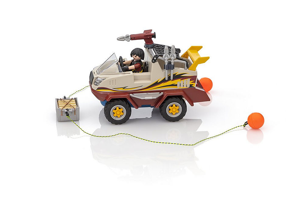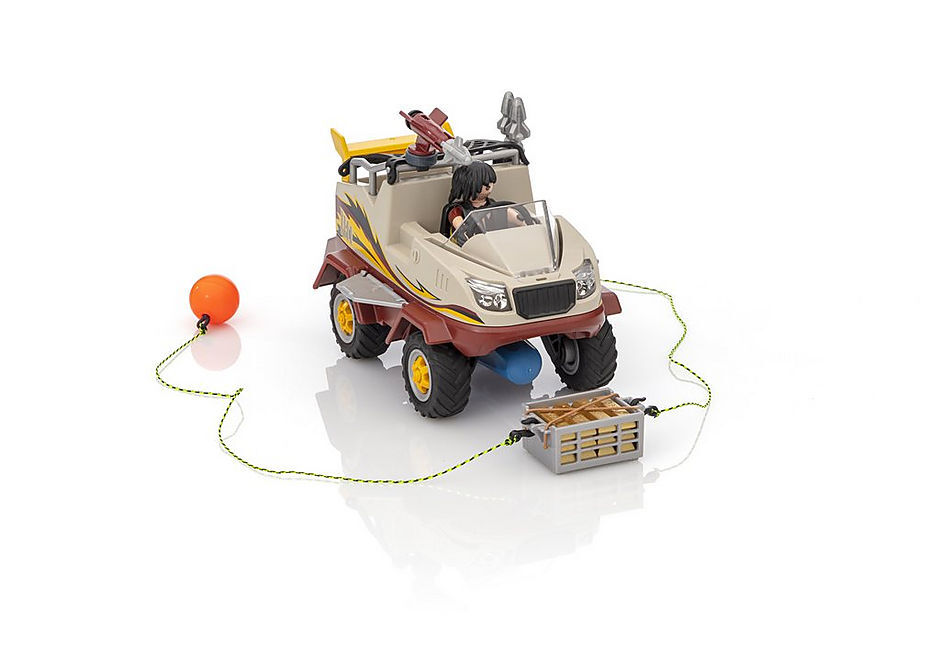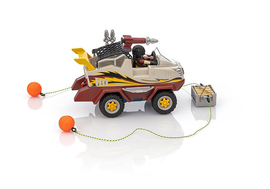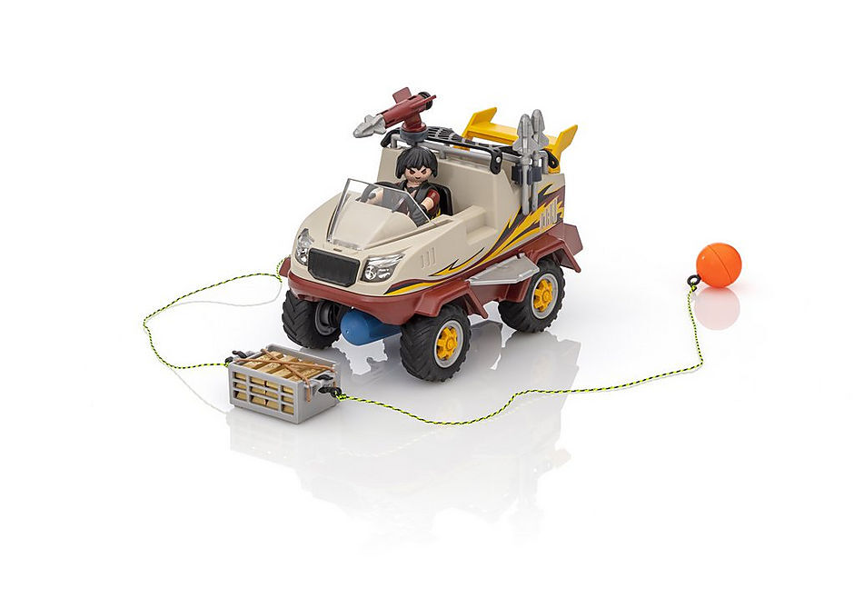 Looks like the thief is on the run with the Amphibious Truck! Watch out as he uses the functioning cannon to fend off anyone that approaches. This floating vehicle can easily transition from land to water, and the included underwater motor (1 x AA battery required) will help the thief attempt a quick escape.