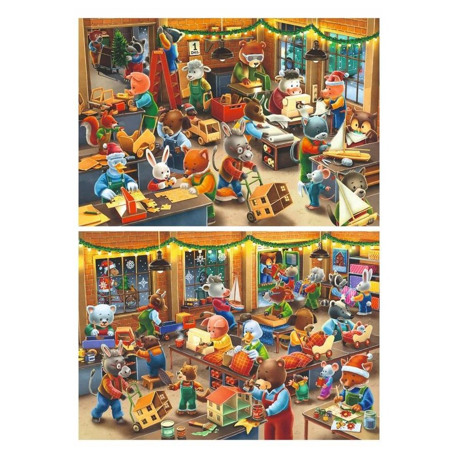 The Ravensburger Christmas Toy Factory two 12 Jigsaw Puzzle brings cheerful, festive fun to every playtime. It features adorable animals helping Santa prepare toys in his workshop, making it a perfect Christmas activity for little puzzlers.