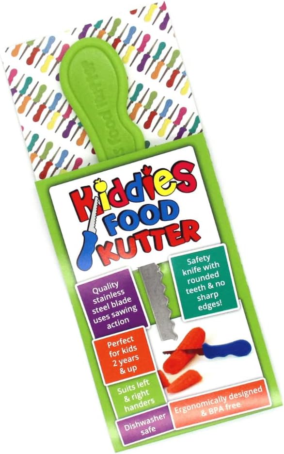 The Original Kiddies Food Kutter is perfect for getting kids involved in cooking and meal preparation and cutting their own dinner on the dinner plate. It teaches fine motor skills, hand-eye coordination, independence, and builds self-confidence.