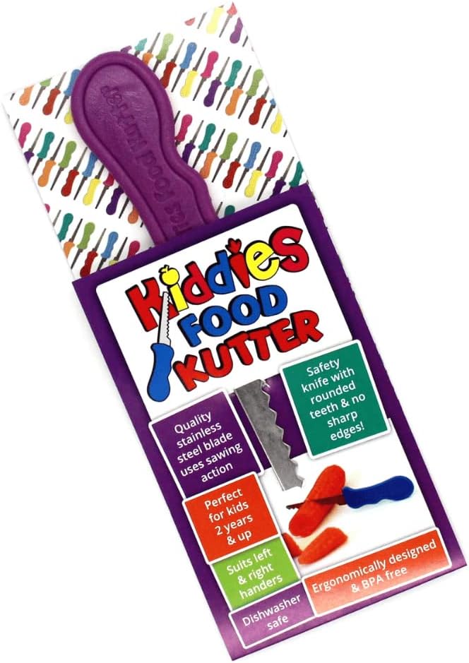The Original Kiddies Food Kutter is perfect for getting kids involved in cooking and meal preparation and cutting their own dinner on the dinner plate. It teaches fine motor skills, hand-eye coordination, independence, and builds self-confidence.