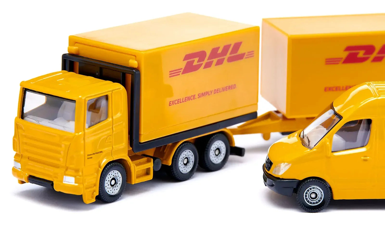 Whether it's a big city metropolis or a sleepy little village in the provinces: the yellow delivery vehicles with the three big red letters of the parcel and letter express service DHL can be found everywhere and ubiquitously. The parcel service was founded in 1969 in San Francisco as a cash-in-transit company: At that time, the three founders delivered shipping documents from ships and other important documents by plane from San Francisco to Honolulu. The first letters of their surnames resulted in the company name: Adrian Dalsey, Larry Hillblom and Robert Lynn. Of course, DHL and its characteristic delivery vehicles can also be found in children's play towns and villages, where they diligently deliver letters, parcels and packages. The DHL gift set consisting of a truck with trailer, forklift and transporter ensures that everything runs as smoothly as possible. Each of the vehicles is of course immediately recognisable by its DHL-yellow paint job with the licensed DHL lettering. There is also a whole pallet full of parcels waiting to be delivered. So, here we go...