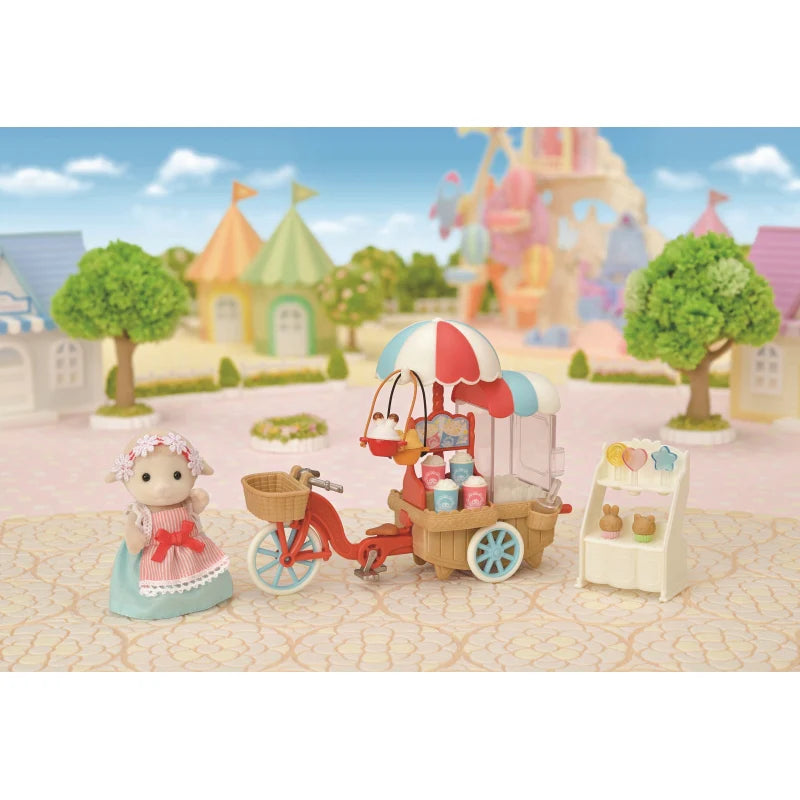 Get poppin' with the Sylvanian Families Popcorn Delivery Trike! Delivering delicious snacks with style, this trike is perfect for a fun-filled day at the park or a cozy movie night. With its bright colors and charming design, it's sure to be a hit with any Sylvanian Family. Don't forget the butter!