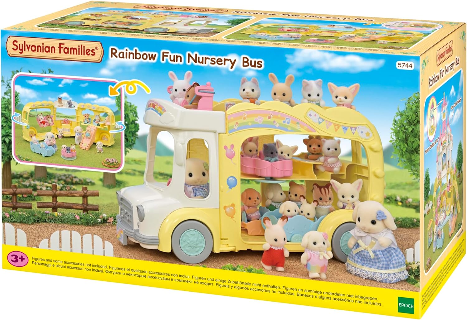The seats turn into a merry-go-round, swing, slide, see-saw, piano and baby carriage. Any babies, including the cradled babies, can sit in the merry-go-round and baby carriage. The ropes of the swing can be used as seatbelts on the bus.