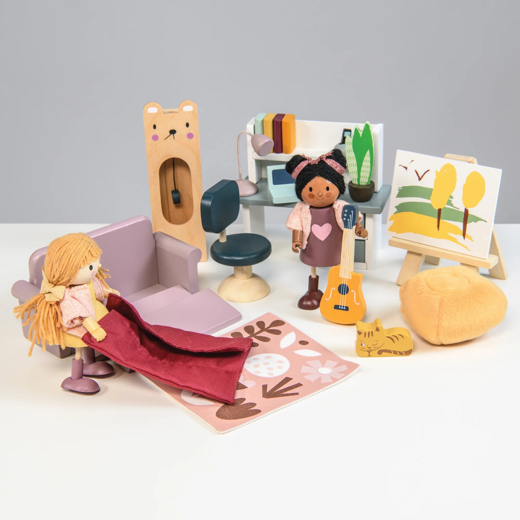 A comprehensive dollhouse furniture set that transforms any room into a creative workspace and cozy retreat. This study combines the practical with the playful - from swivel office chair and laptop for grown-up role play to guitar and easel for artistic expression.
