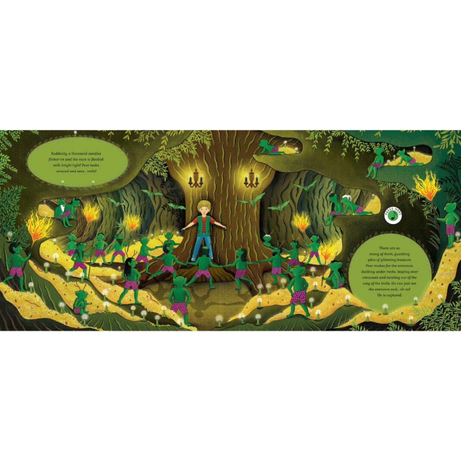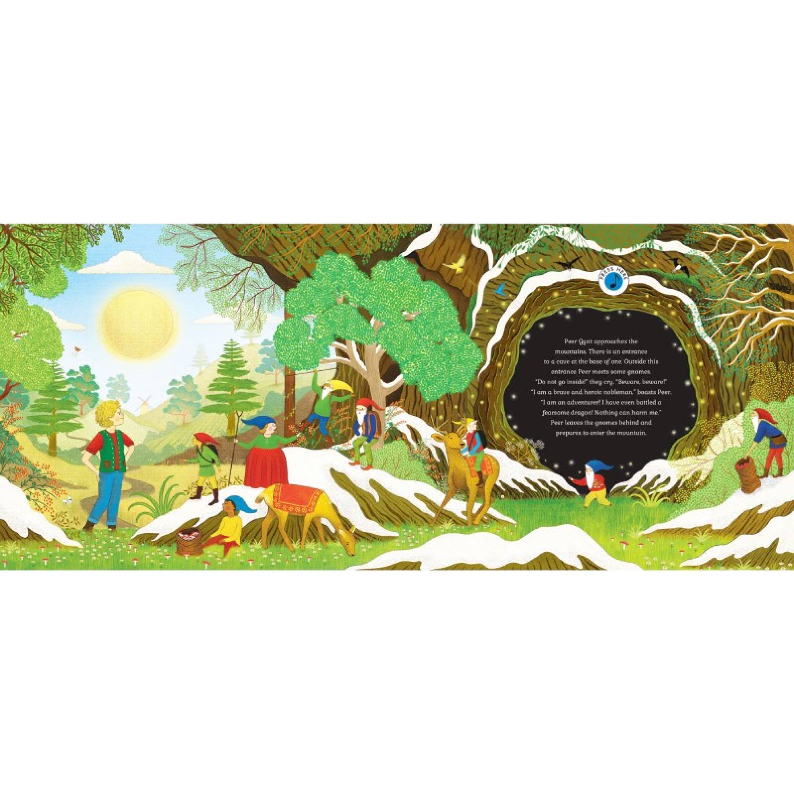 This tale of a boy's adventure through the valleys and mountains of the Norwegian countryside begins at a wedding feast far, far away. Peer Gynt is bored and he's longing for adventure. After sneaking off from the party he finds himself at a peaceful lake where he meets some dairy people. When he lies about his escapades riding reindeers through the sky, they dare him to go to the lair of the Mountain King, the king of the trolls. The king's halls are dark and spooky, and it isn't long before Peer is captured. How will he escape? And will he learn the importance of humility and the value of friends?