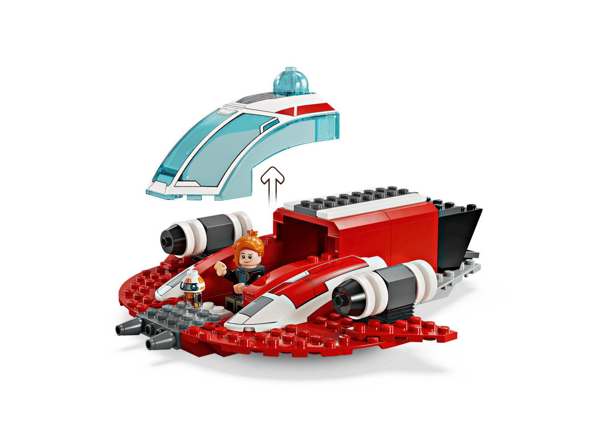 - Simple to build – The Crimson Firehawk features a Starter Brick base for easy building and a cockpitwith space for all 3 characters, and the speeder bike fits in the rear of the starship
