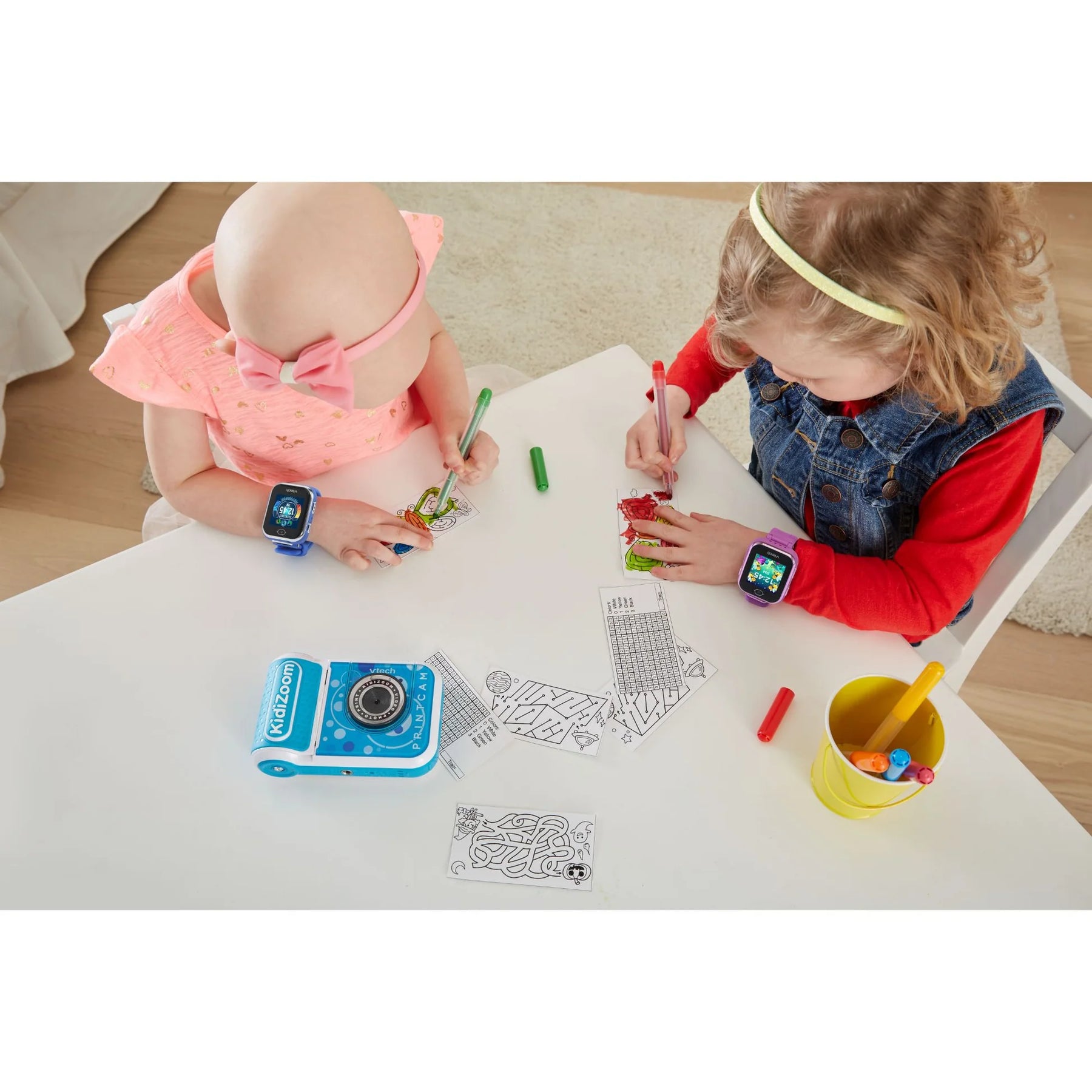 Take a photo and print it instantly with the KidiZoom Print Cam! The flip-up lens allows for easy selfies too. The camera is jam-packed with fun features like special photo effects, stamps and borders, 3 games, panoramic prints and comic strip maker. You can also turn your photos into line drawings to colour or use the print shop to print games, design and print your own cards, pretend money, accessories, and more.