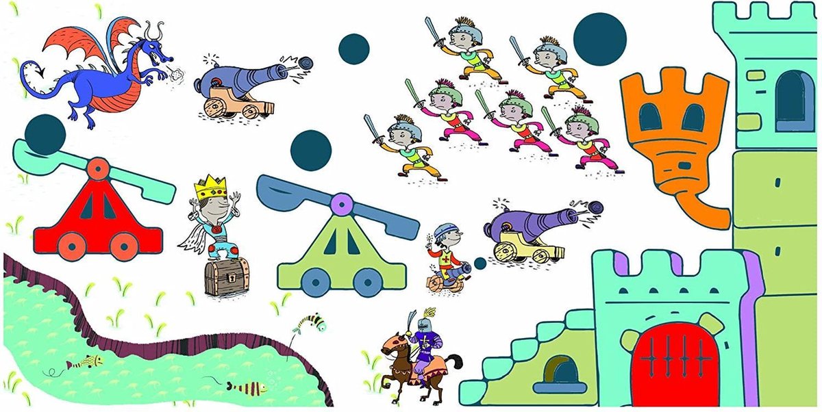 Children can use the 10 large part printed background cards (20 by 40cms) as the basis for creating knights and dragons story boards and then add characters and action with the supplied themed stencils and stamps. A fabulously creative story telling kit that makes a great gift for children ages 6 Years and up.