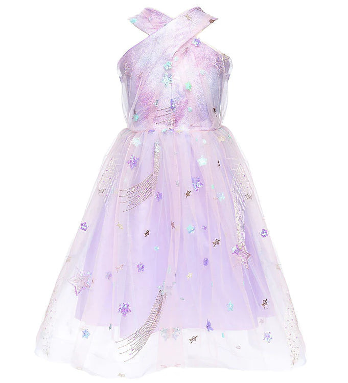 Adorned with a constellation of stars, this dress is perfect for any occasion and invites your child to twirl and dance under the night sky. The dress is not just a piece of clothing, but a celebration of childhood dreams and the enchantment of growing up. It encourages your little one to reach for the stars and embrace the magic of each era.