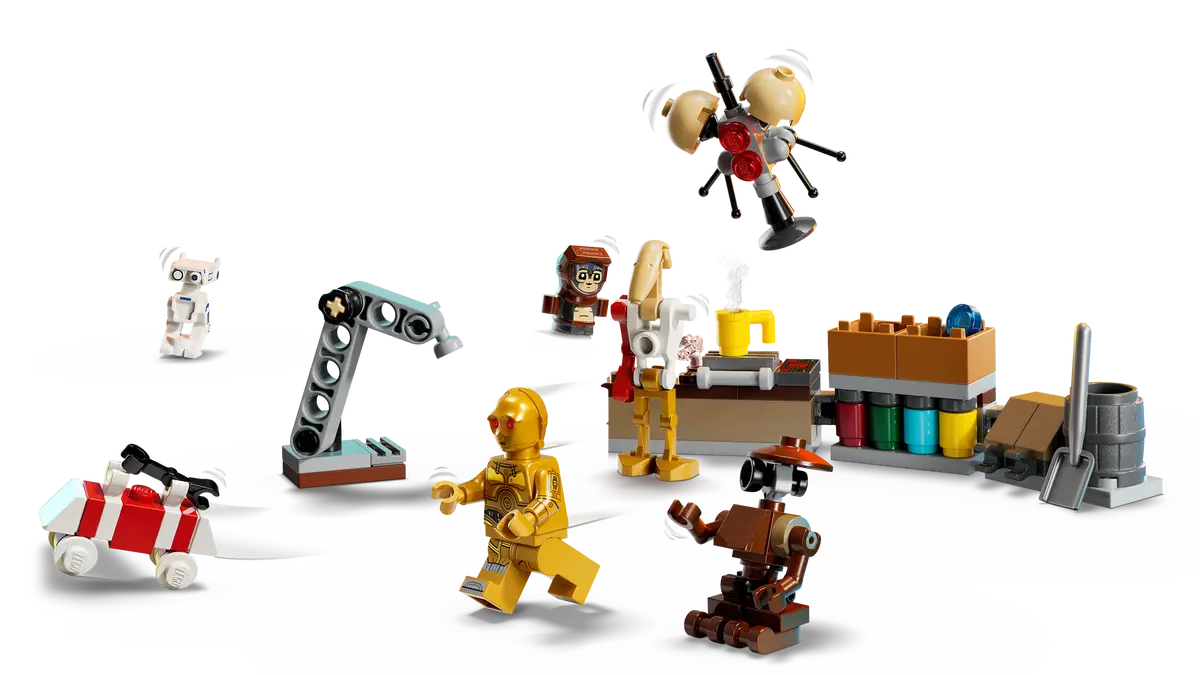 - LEGO® Star Wars™ Advent Calendar 2025 gift set – Kids become droidsmiths like Babu Frik as they discover unique building toys each day in the run-up to Christmas and create their own droid workshop