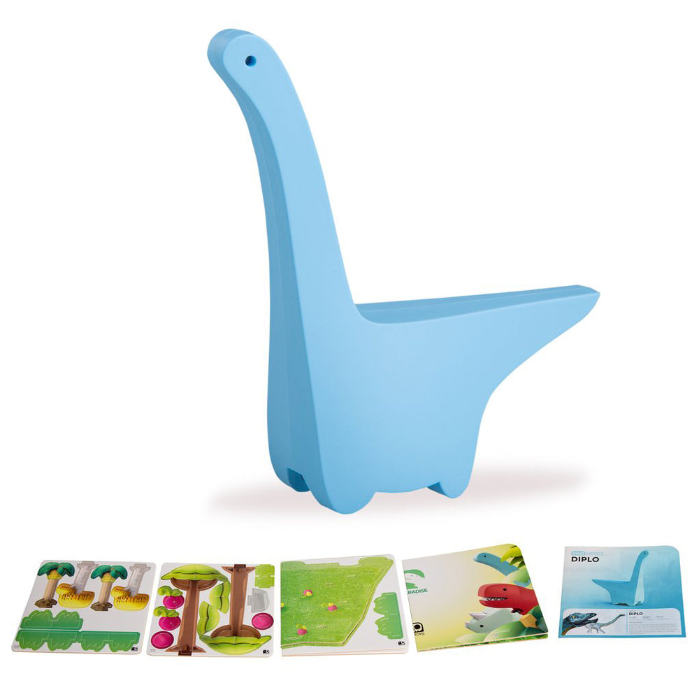 Each dinosaur is built with a magnetic body that can be separated into 2 parts to reveal a skeletal puzzle within, helping children learn the basics of anatomy and natural history through play.