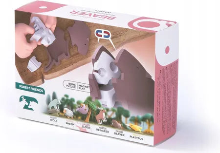 Each skeleton is encased in a smooth magnetic shell. Simply pull the puzzle bones out and apart, and then snap them back together again and again. Click them back in the shell to keep the bones safe and snug