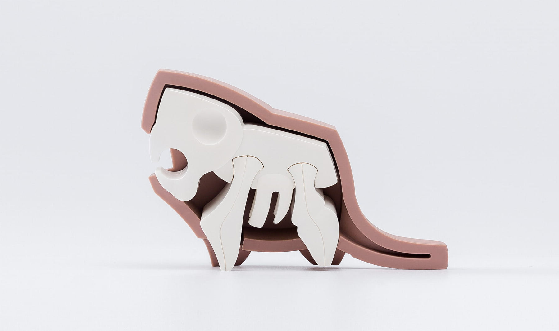 Through the ingenuity of Half Toys, children discover a world made of animals, dinosaurs or underwater creatures that open in two and reveal their skeletons like a puzzle.