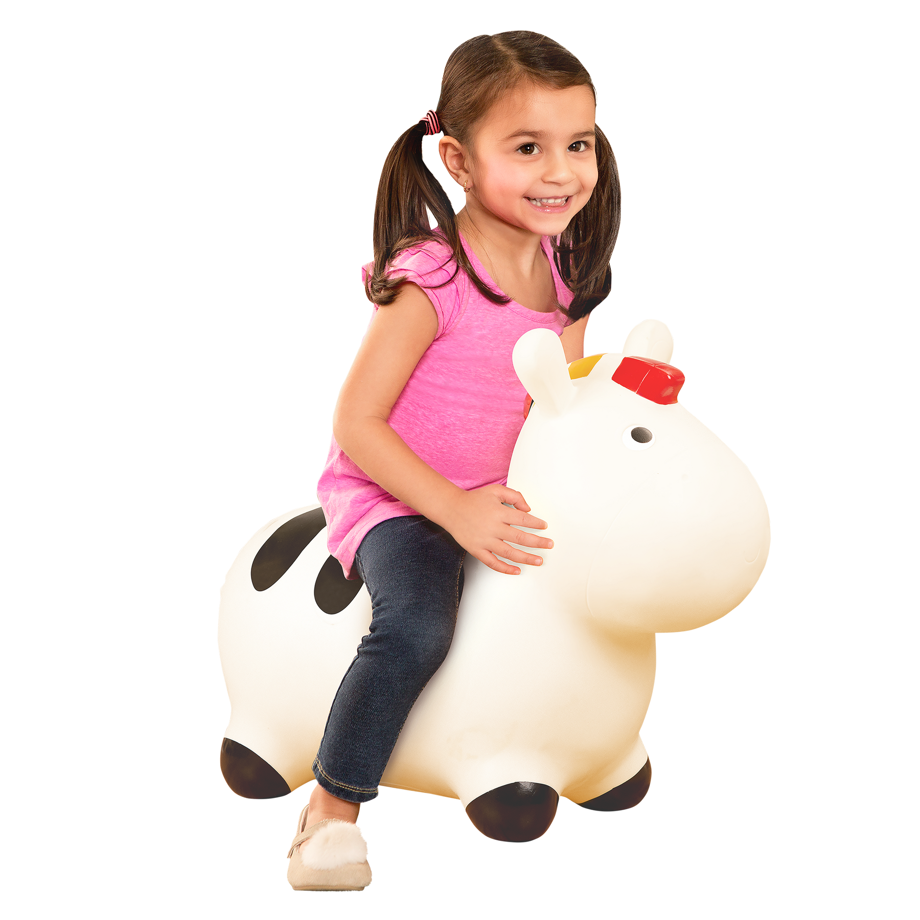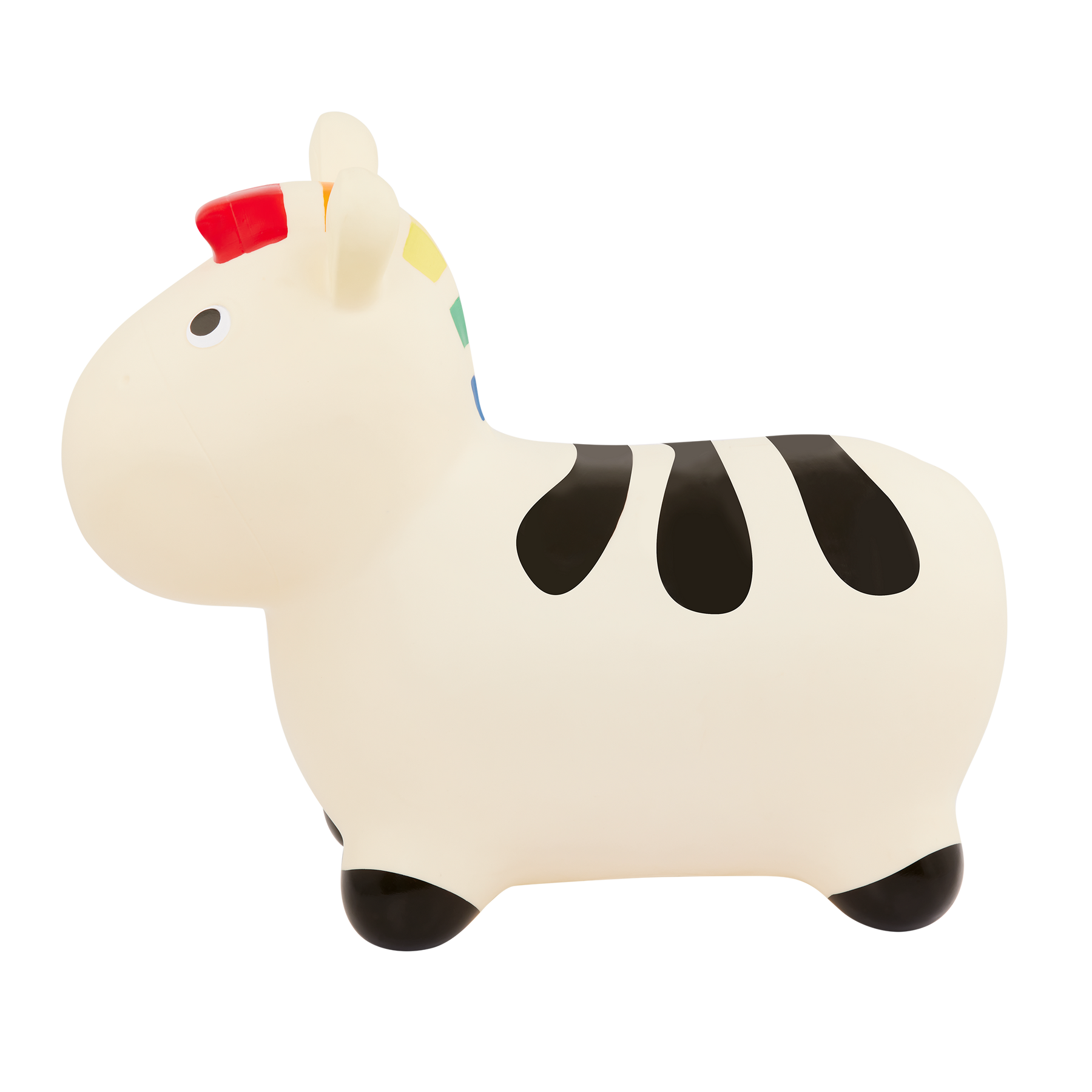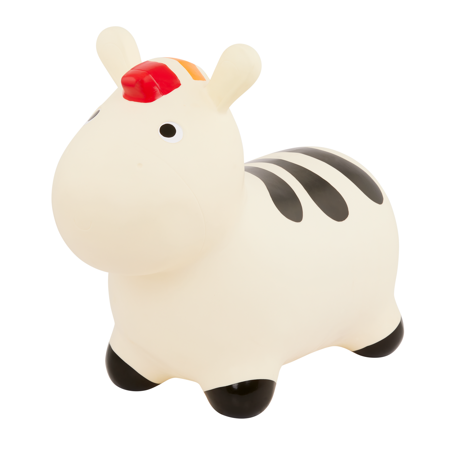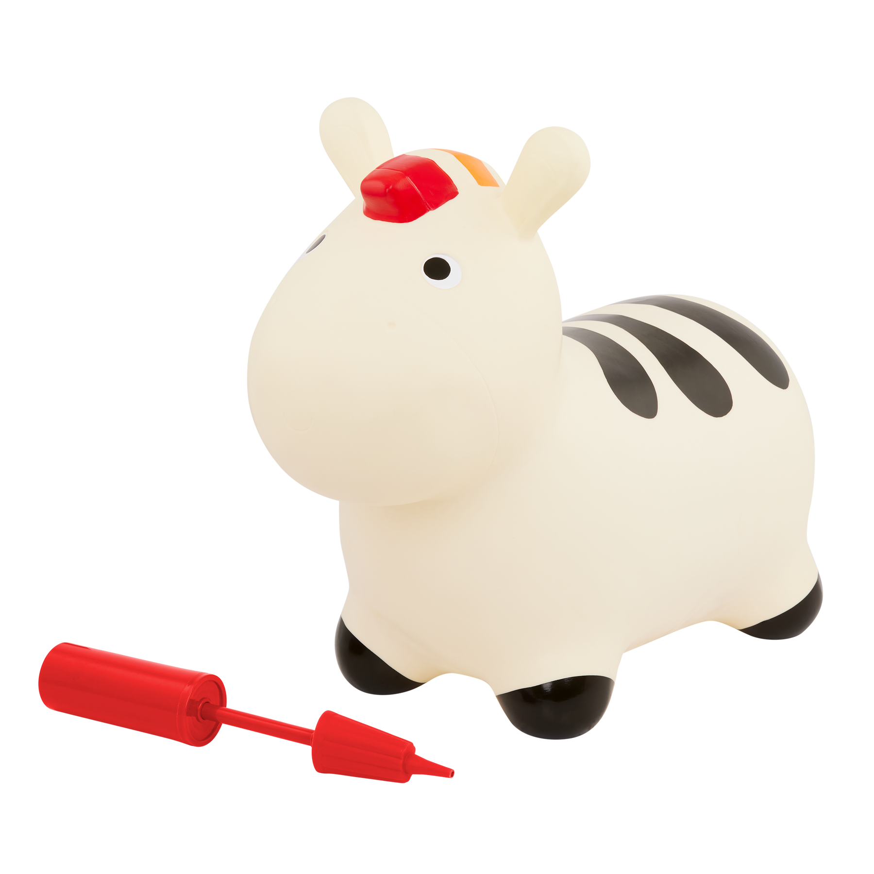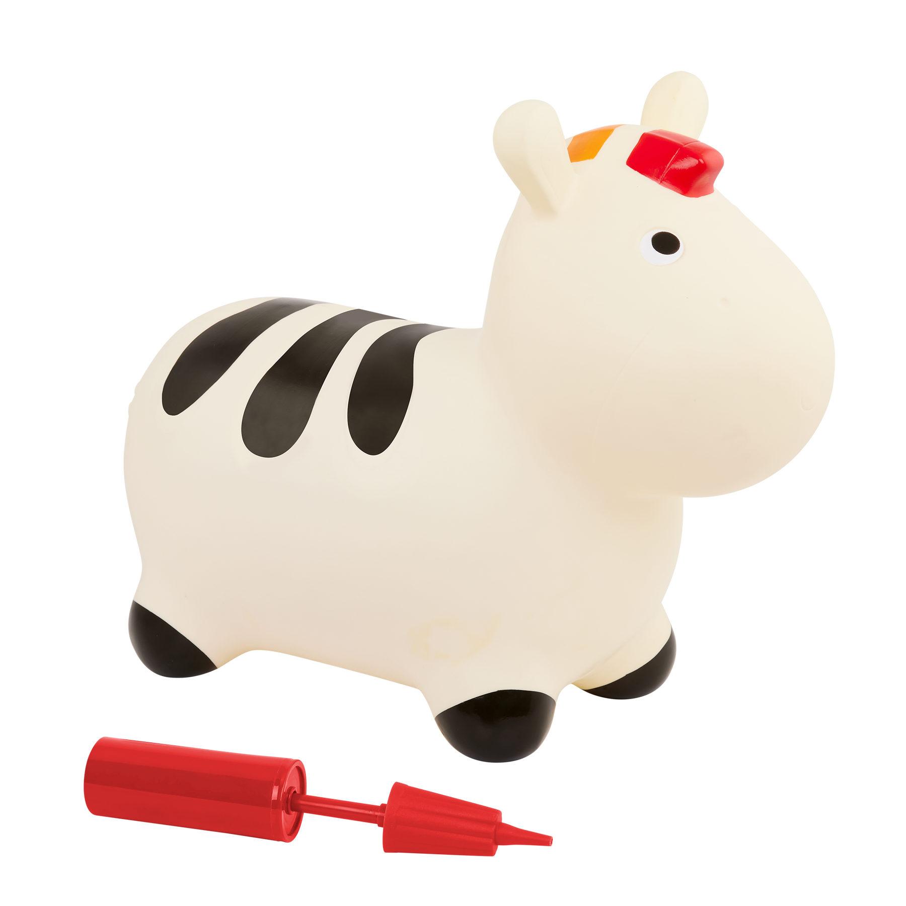 Hop on and hang on, the Hoppin’ Zebra is ready to bounce! This inflatable ride-on bouncer from Battat is squishy soft and just the right size for toddlers. With easy-to-grab ears and four sturdy feet, kids have everything they need to put their balance and coordination to good use. Kids will fall in love with this cute and engaging zebra toy! Don’t forget the included manual air pump! It’s easy to use and quickly inflates Hoppin’ Zebra to go from unboxing to playing in no time! This zebra bouncer is a great way for children to stay active while improving their motor skills. Make sure to bounce on flat surfaces and clear the area of other toys and obstacles before hopping on!