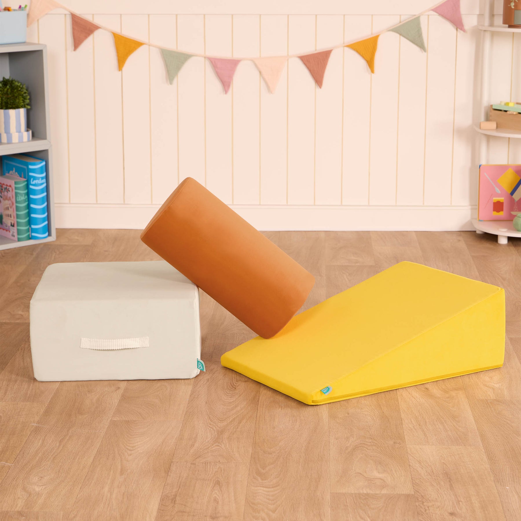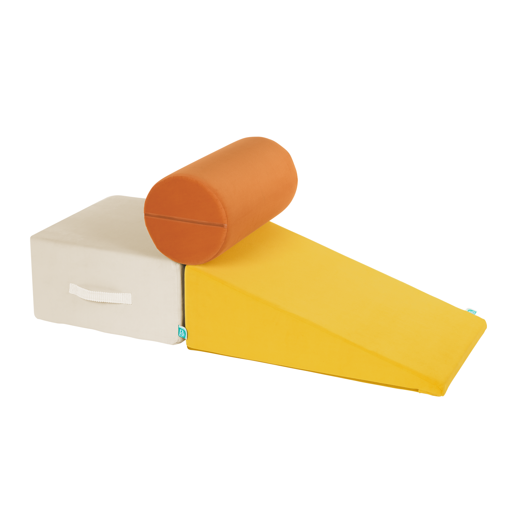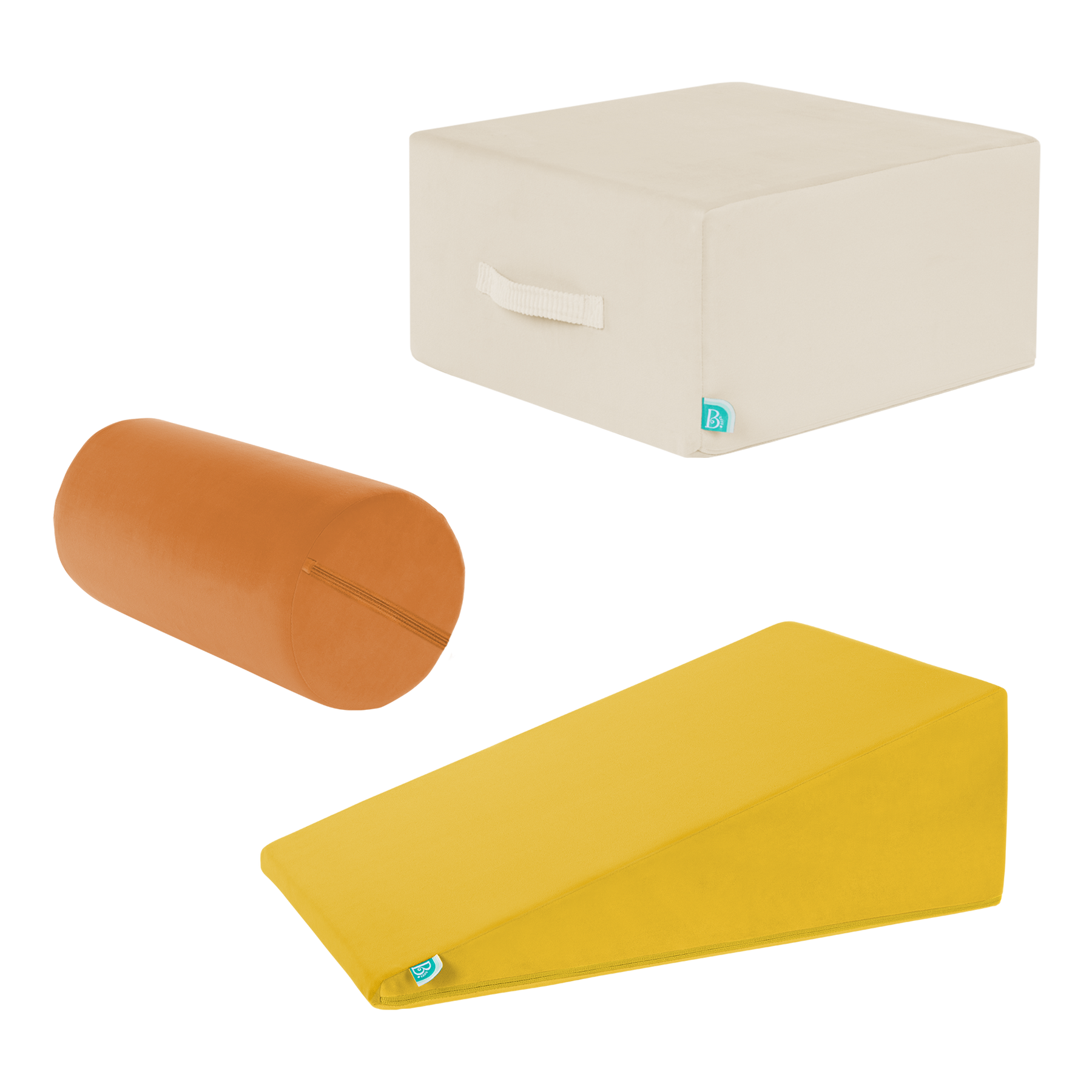 Build, play, and smile with a squishy trio of WonderShapes from B. toys! This 3-piece set of foam shapes includes one plush block, ramp, and cylinder to build and play with! Open 'em up and watch them expand to their full size — just like magic! Stack and place them to create an obstacle courses, or add them on to fun forts for endless possibilities! As kids crawl and clamber over the super-soft shapes, they'll be developing gross motor skills, and this set it a great way to stay active indoors. The machine-washable covers are easy to remove and toss in the wash to keep fresh, and the handles allow kids to easily rearrange their play space any way they please.