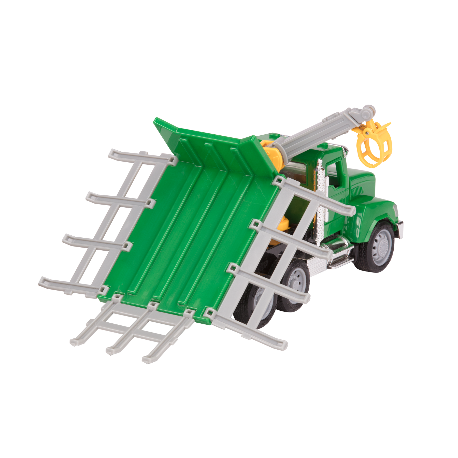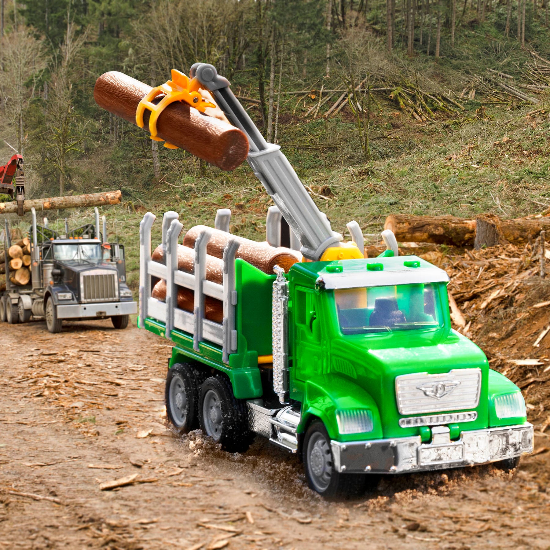 Get the job done with DRIVEN by Battat’s Micro Series Logging Truck! This incredibly detailed toy truck for kids has several moving parts, including cab doors that open and close, and a hood that lifts up to reveal the engine. Nine toy logs are included – open the fences and tilt the truck bed to unload them all! The crane arm extends, pivots up and down, and swivels 360°. Use the claw to grab the logs and stack them back up in your truck! This construction toy also makes realistic engine and horn sounds, and has working headlights. Remember: stay DRIVEN, because the crew depends on you!