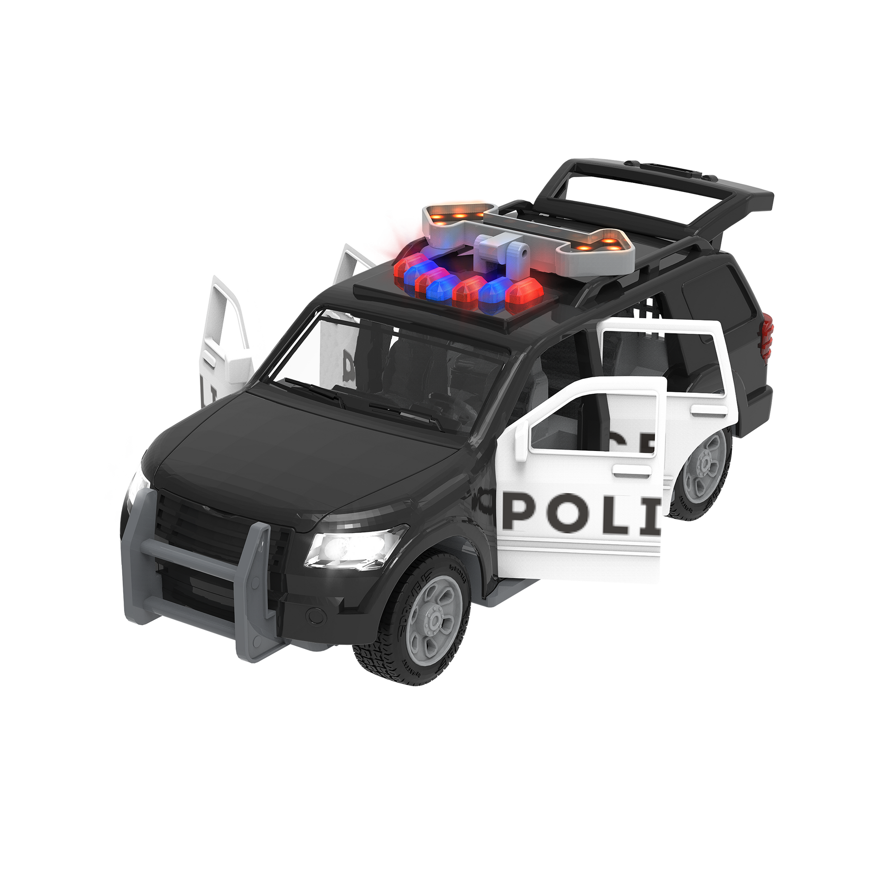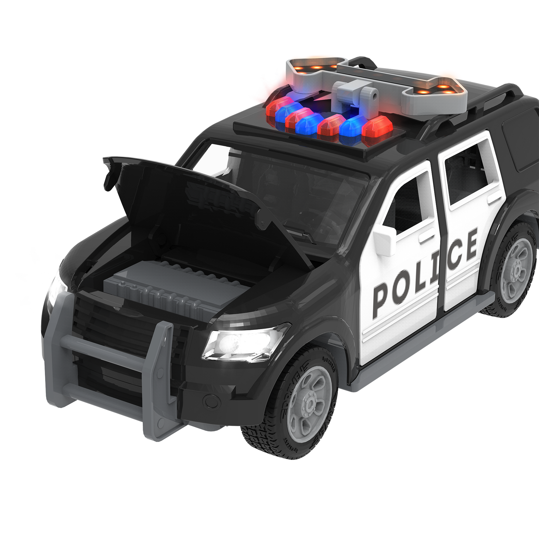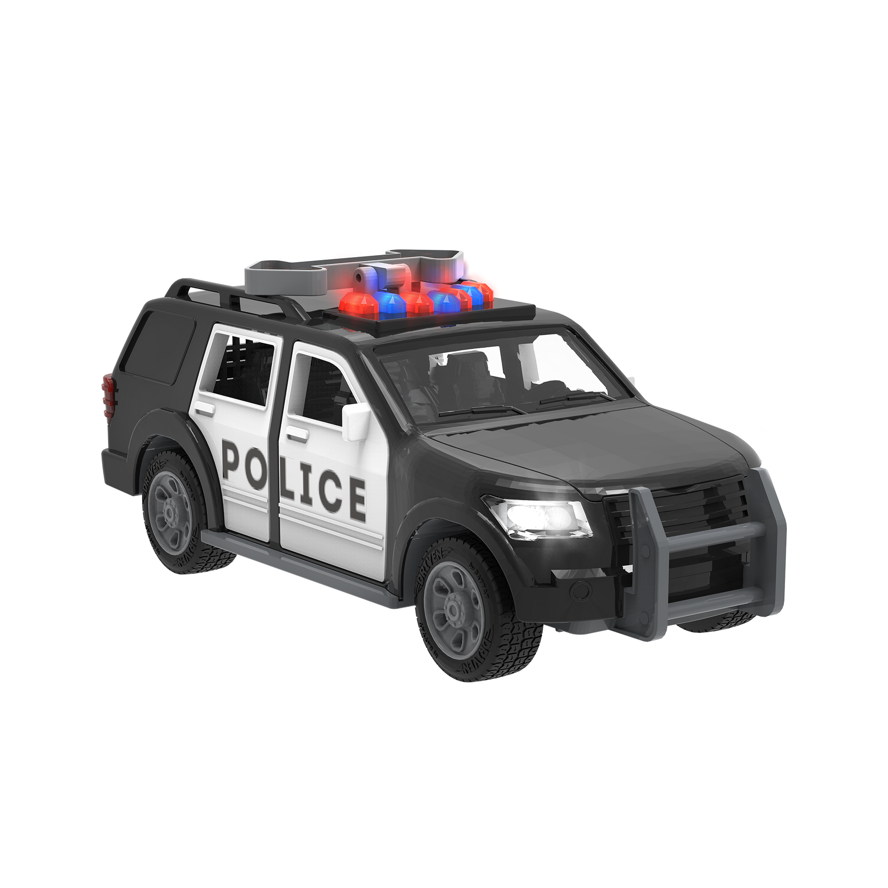 Direct traffic with the Micro Police SUV from DRIVEN by Battat! This toy car has lots of cool features to make it look just like the real thing. You can open the car doors to take a peek at the detailed interior, and pop the hood to check the engine. There is even an arrow traffic sign on the roof that you can move up and down! Need to get somewhere in a hurry? Flash the blue and red lights, activate the siren sound, and hit the road! Stay DRIVEN, because the crew depends on you!
