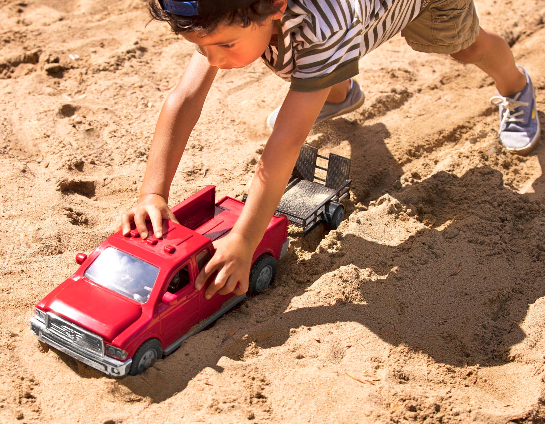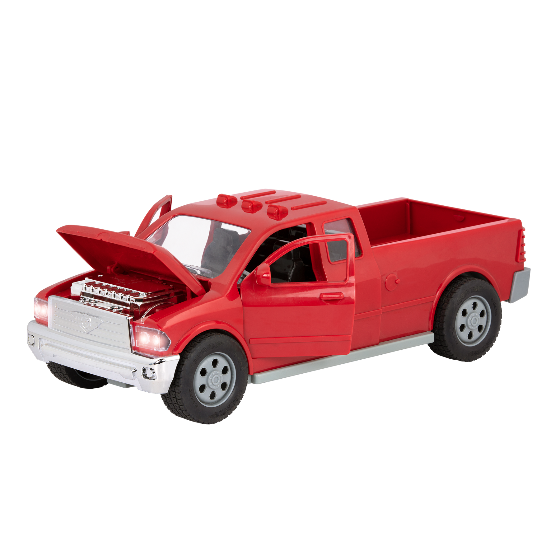 Go on an imaginary off-roading adventure with the Midrange Red Pick-Up Truck from DRIVEN by Battat. This durable toy truck comes with soft, rubber wheels, so it’s ready to go wherever the fun takes it—inside or outside! With a detachable trailer and multiple movable parts, this toy pickup is great for hands-on play. There are tons of realistic details to discover too! Get ready for tons of imaginative pretend play—you could go on a make-believe camping trip or get to work on a pretend construction site. Just remember, stay DRIVEN because the crew depends on you!