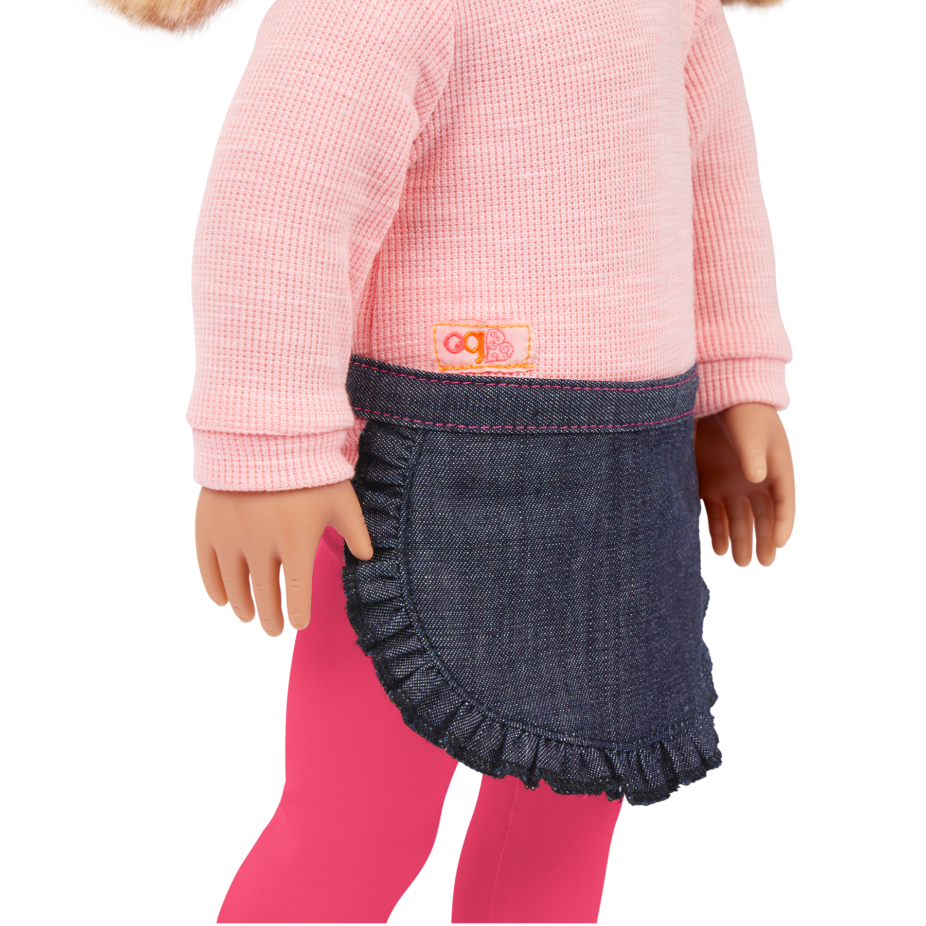 Making treats is ever so sweet with the Our Generation Ready for Chocolate set for 46 cm dolls! Perfect for dessert making and party prepping, dress up your doll baker with the apron and use the accessories to whip up a batch of scrumptious chocolate. This set includes a mixing bowl, piping bag, chocolate baking shape, and a strawberry topping to put the finishing touches on any dessert! And the best part? The mixing bowl smells like yummy chocolate to delight little chocolate lovers! Once the baking is done, kids can use the clothing items as a standalone outfit or mix and match with other Our Generation doll clothes to explore more fun looks. Our Generation doll accessories make a great gift for kids ages 3+ (small parts), encouraging them to create their own unique stories. Compatible with most 46 cm dolls, doll clothes, and accessories. Our Generation dolls sold separately.