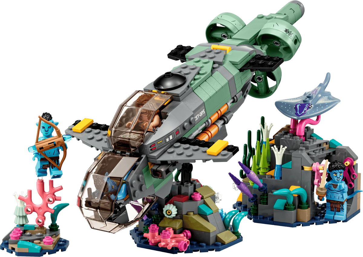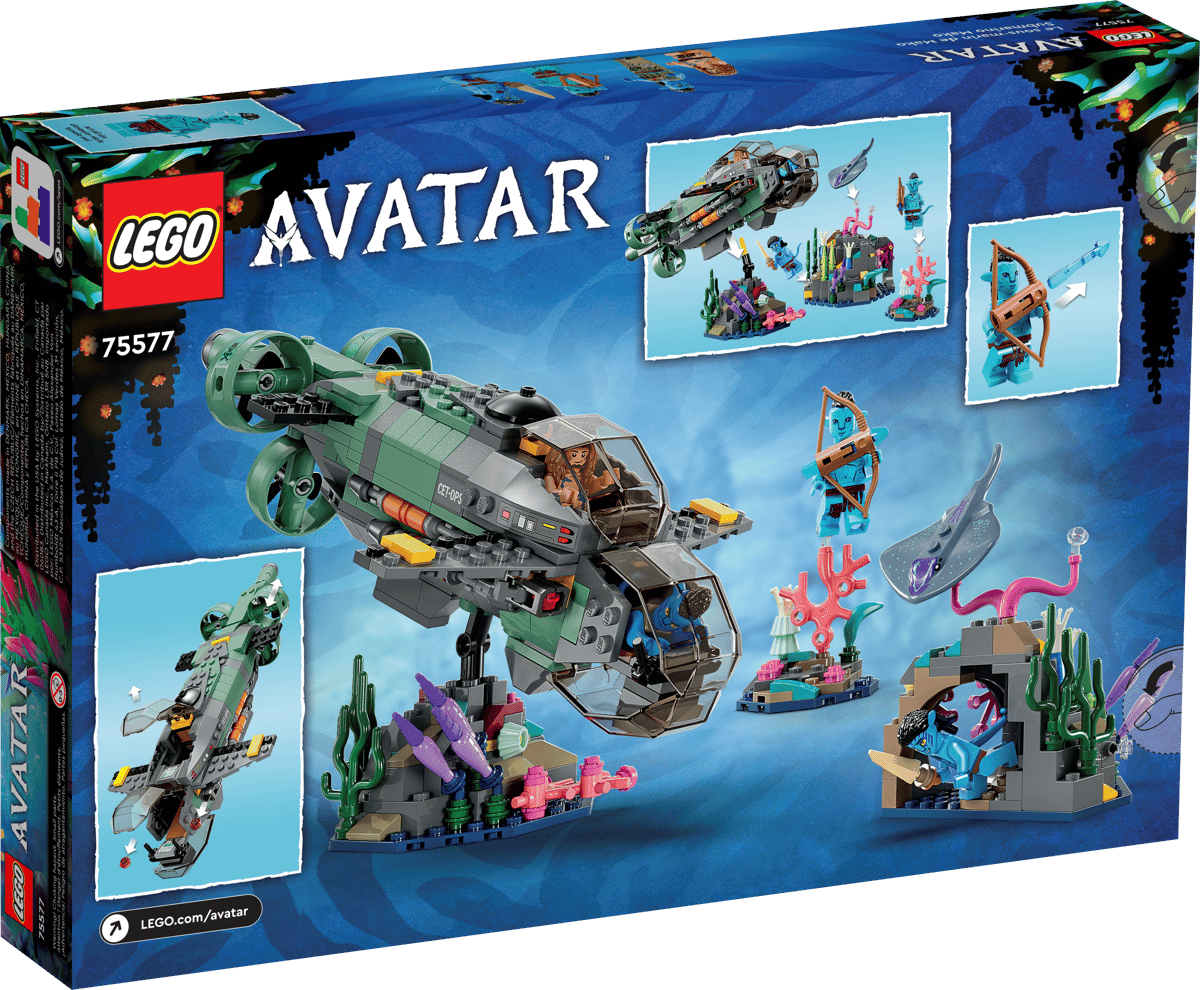 • What’s in the box – Includes all you need to create a toy Avatar Mako submarine, 3 Pandoran ocean coral settings including a cave, and Neteyam, Ao’nung, Spider and RDA Quaritch minifigures