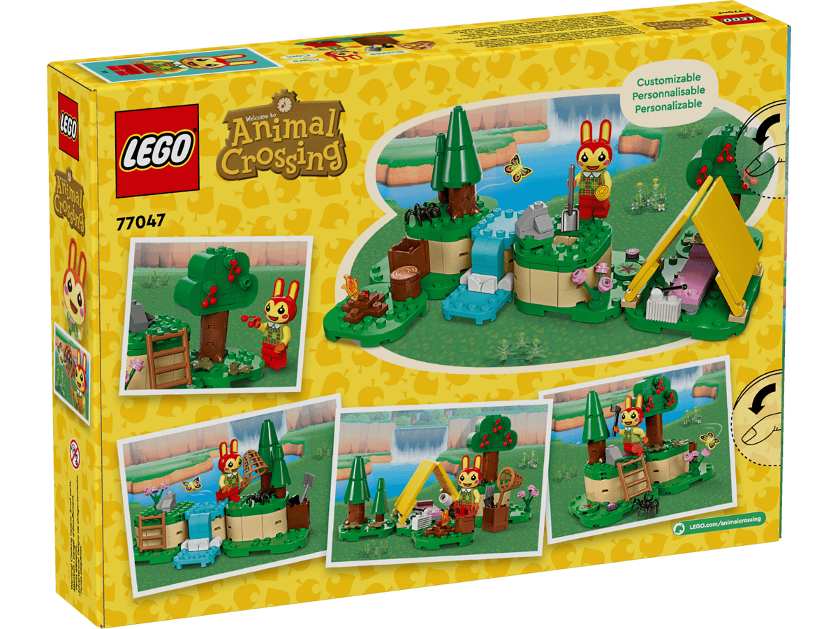 Girls and boys build this fun Animal Crossing™ campsite with the Bunnie’s Outdoor Activities (77047) creative toy for kids aged 6+. With this playset they’ll have loads of fun helping the Bunnie rabbit minifigure set up her buildable toy tent, before heading out to explore the area.