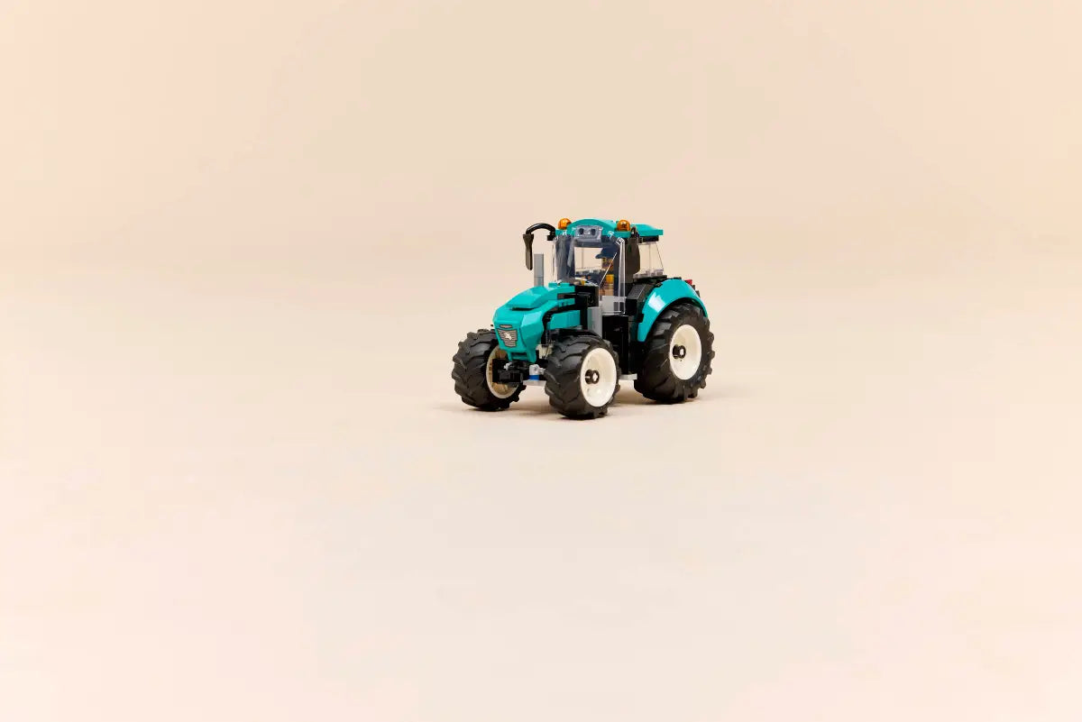 - WHAT'S IN THE BOX? – This LEGO® tractor set includes everything kids need to build a toy farm tractor with 4 largerubber tractor tires and a fresh teal color scheme, plus a farmer minifigure