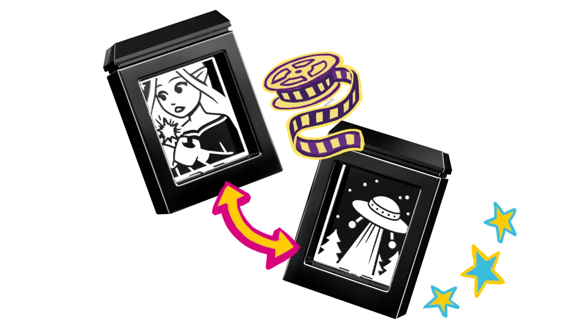 It’s “lights, camera, friendship!” as kids tell the story of friends Paisley and Aliya, who are enjoying a movie night in Paisley’s garden. Slot a movie slide into the projector and press the light brick to make the image appear on the big screen. Discover lots of accessories, including a popcorn machine with a lever to make the popcorn ’pop’! Other accessories include a popcorn box, drinks, a comic book and 2 comfy chairs.