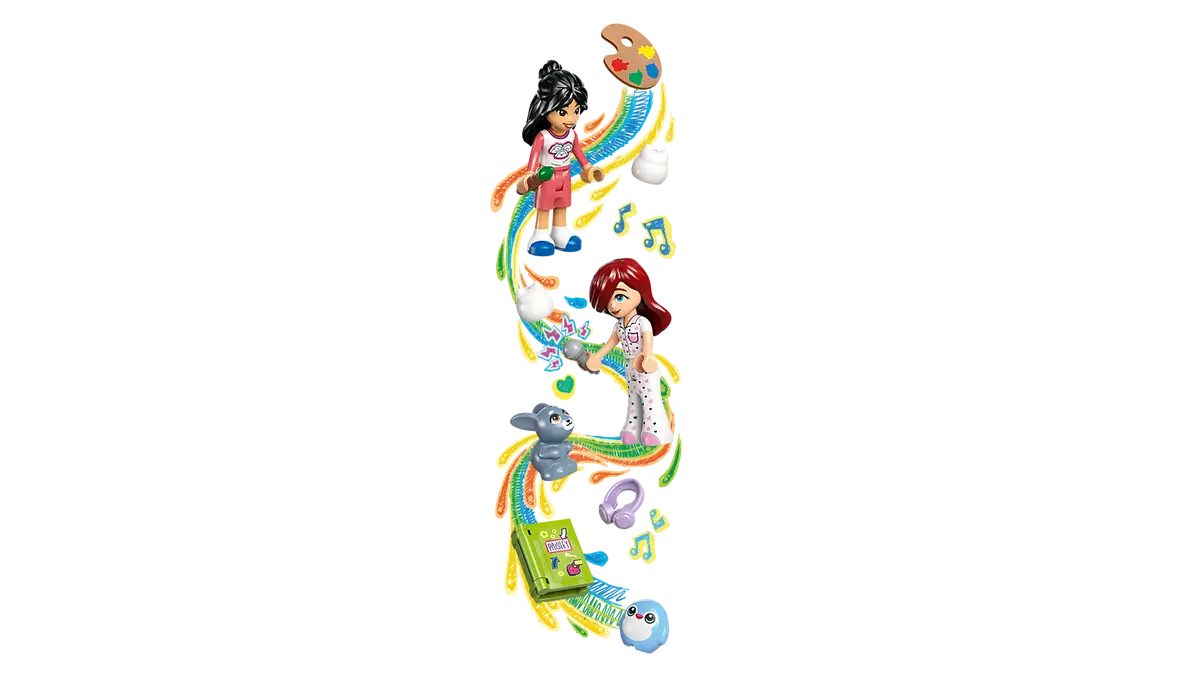 - 2 LEGO® Friends characters – This set comes with Paisley and Liann minidolls, a pet bunny figure and a special plushie-style LEGO piece, plus lots of creative accessories for role-play fun