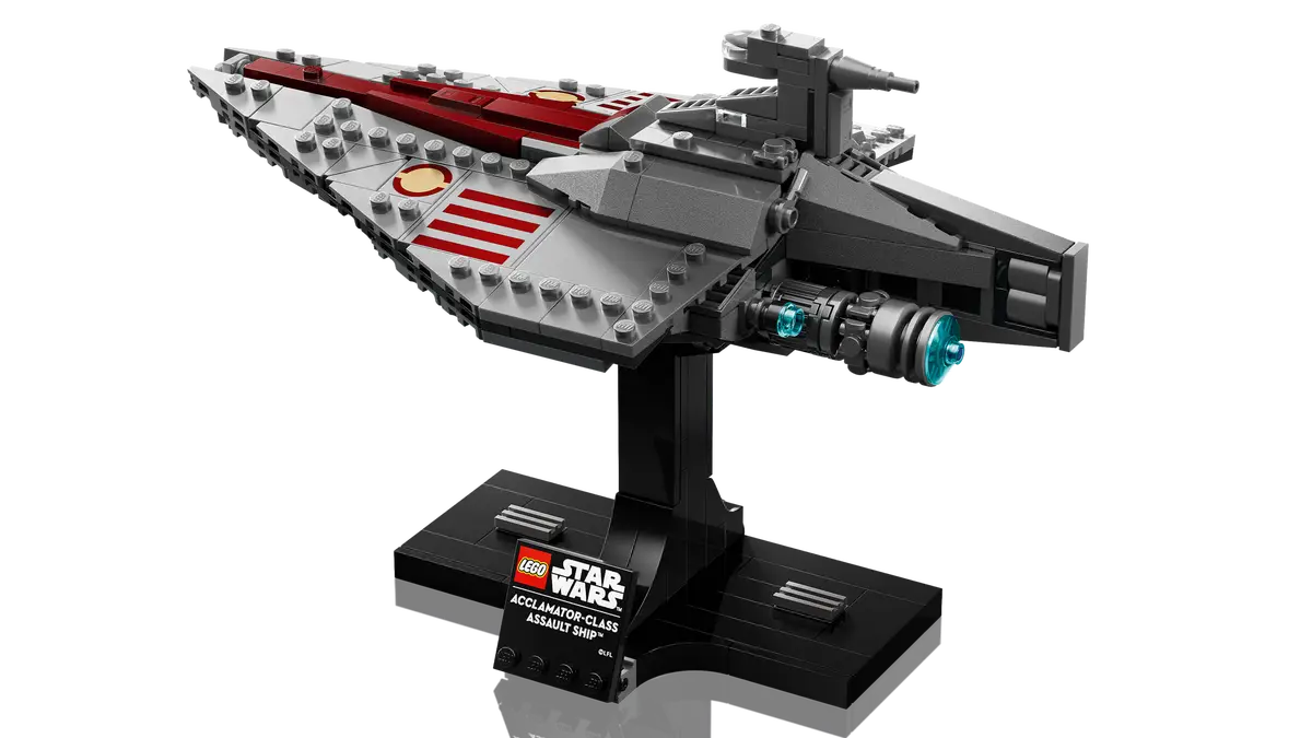 - Build-and-display starship model – Relive dramatic Battle of Geonosis scenes as you build a mid-scale LEGO® Star Wars™ recreation of an Acclamator-Class Assault Ship