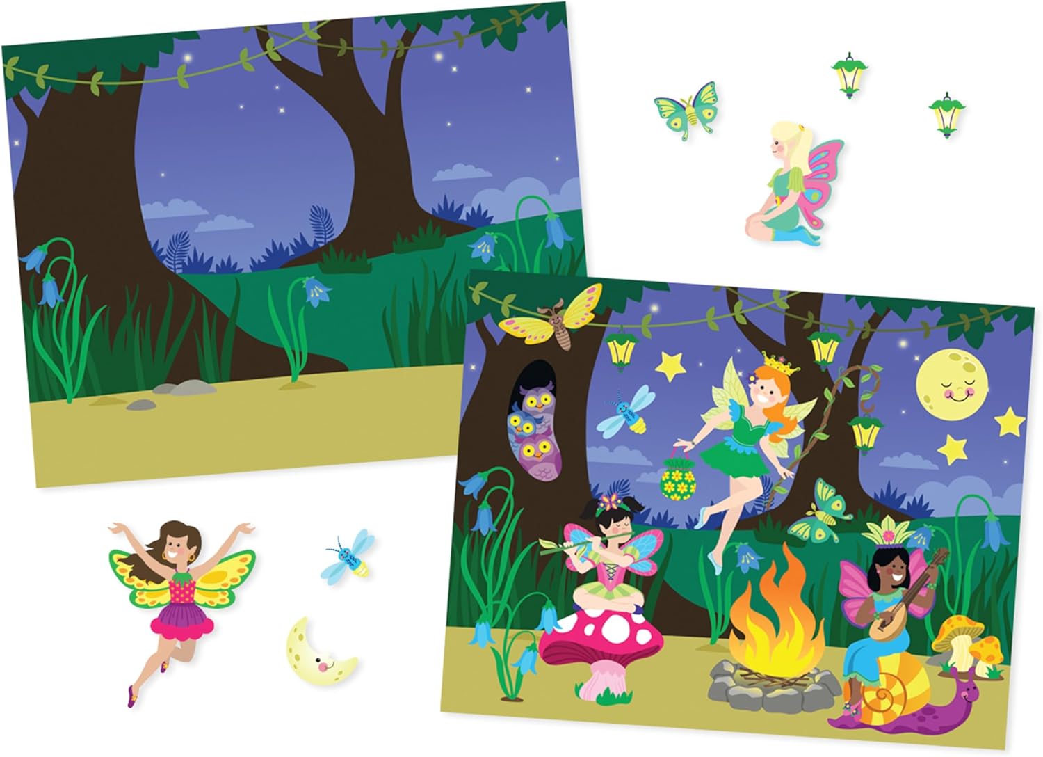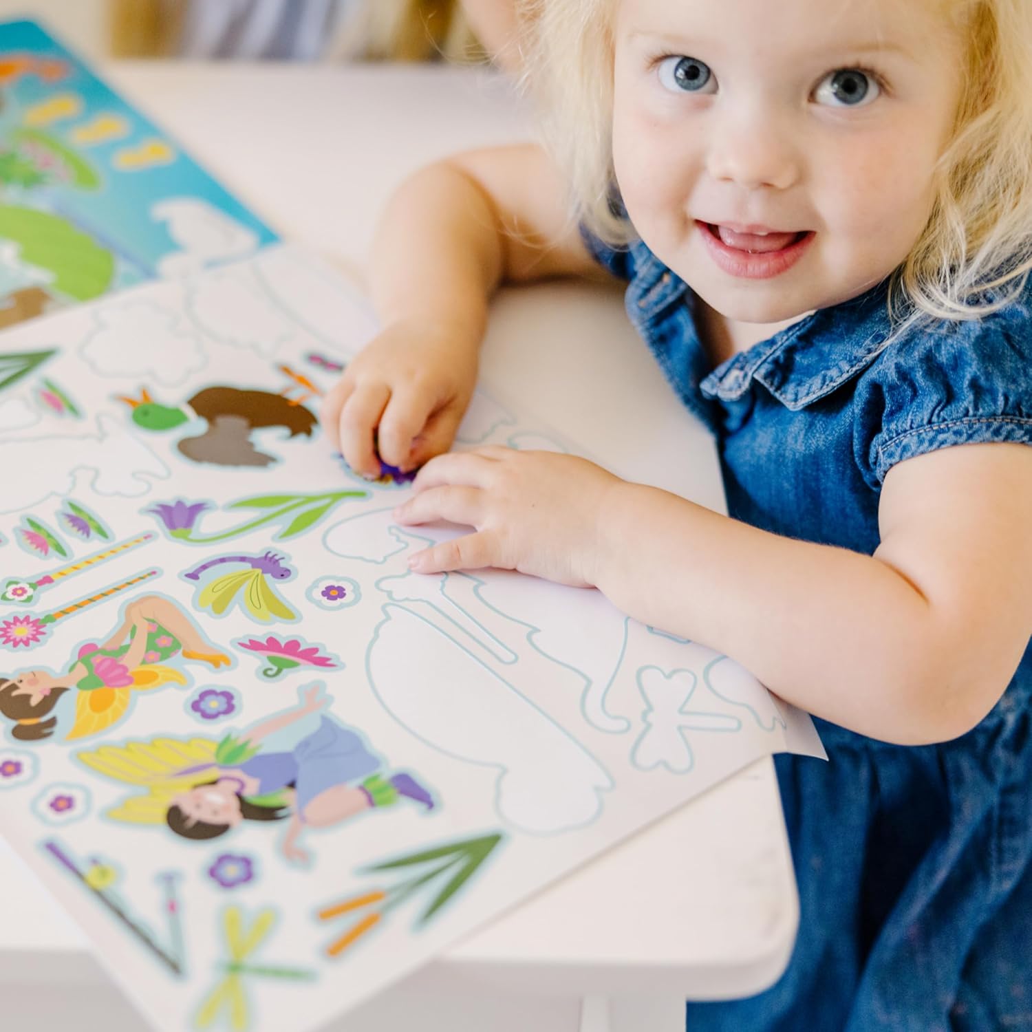 Allow your little one to create their own adventures amidst flowers, glowing lanterns, friendly bugs, and fairies with the Melissa and Doug Reusable Sticker Pad - Fairies.