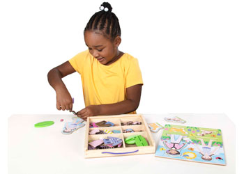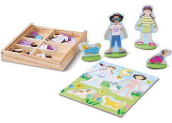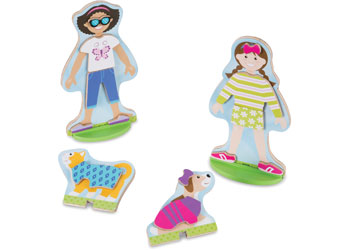 Mix, match, and create endless friendship stories with the Melissa & Doug Best Friends Magnetic Dress-Up Set! Featuring two best friends and their adorable pets—a puppy and a kitten—this charming wooden magnetic set lets kids explore creativity through imaginative play. With dozens of colourful magnetic clothing pieces and accessories, children can dress up the friends in coordinating outfits for every adventure. Everything stores neatly in a sturdy wooden tray with a slide-in lid and carry handle, making it perfect for on-the-go fun!