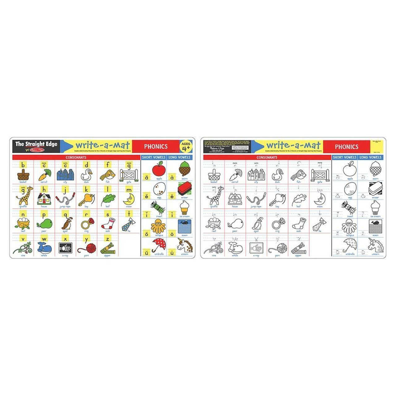 Add new excitement to mealtime with these Melissa & Doug educational and entertaining double-sided, write on, wipe off placemats. These durable activity mats are ideal for use with write on, wipe off crayons and are available in a range of topics from math to maps! Practice and learn all about consonants & vowels.