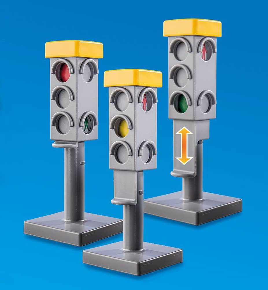 The firefighter uses his motorcycle to get to the scene fast and extinguishes any fire in no time, while the doctor uses her emergency car to get to the scene quickly with her medical kit. Meanwhile, the policeman secures the scene with the warning triangle and then regulates traffic with the changeable traffic light. The traffic light also helps teach children what it means to stop, wait, and go, and how to safely cross the street.