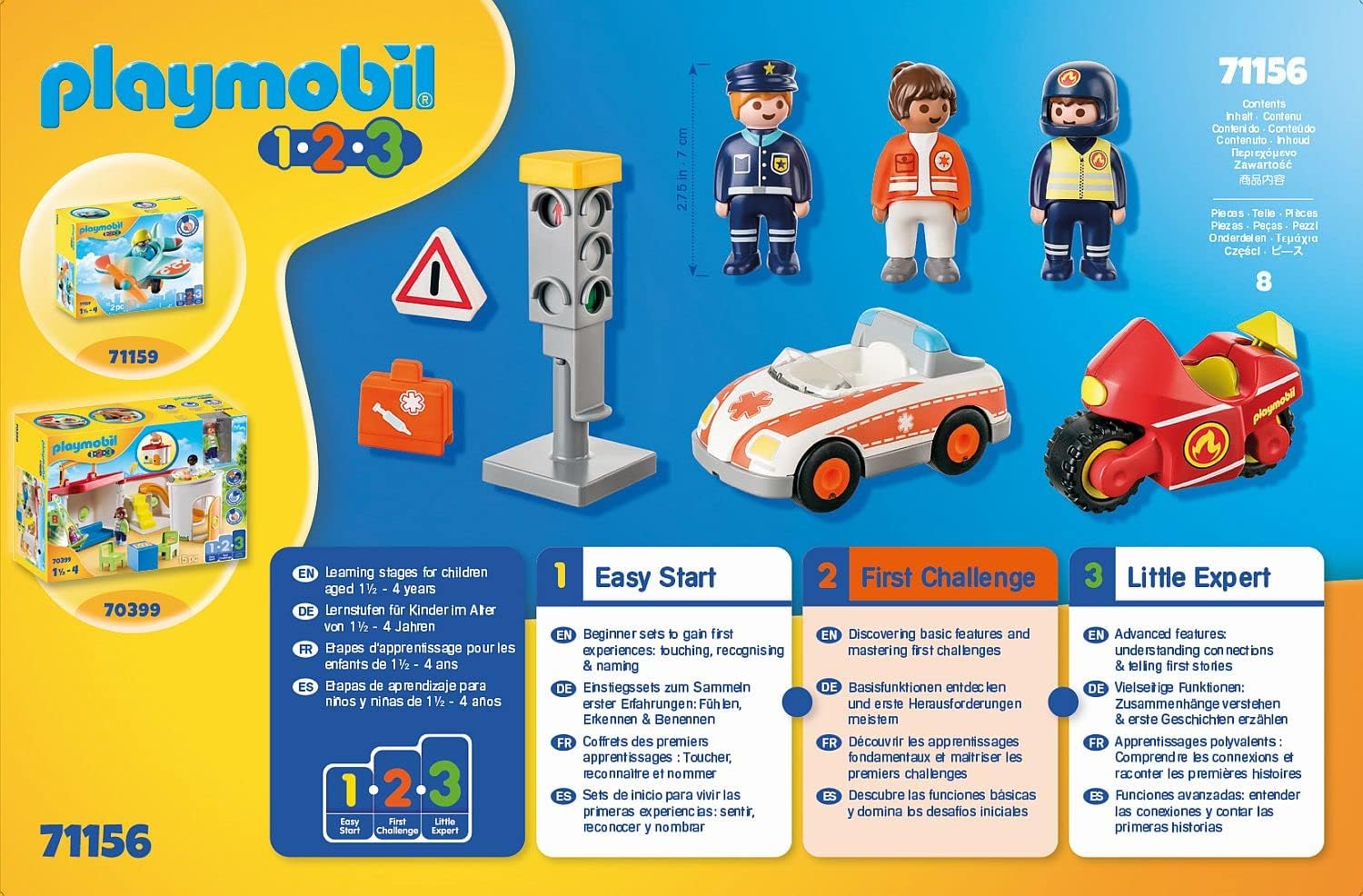 Save the day with the Everyday Heroes! With a bright and colorful design and large, rounded pieces, this PLAYMOBIL 1.2.3 Stage 2 - First Challenge set will help your toddler develop fine motor and language skills as they manipulate the pieces and articulate everyday safety scenes.