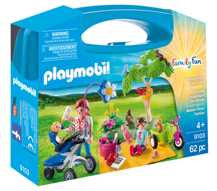 Enjoy the perfect day with the Family Picnic Carry Case. This large take along case gives you everything you need for the ideal picnic, including a blanket, food, and toys! Thanks to the tricycle and stroller, the whole family can join in for this fun afternoon outing. When playtime is over, simply store the pieces inside the case for next time!