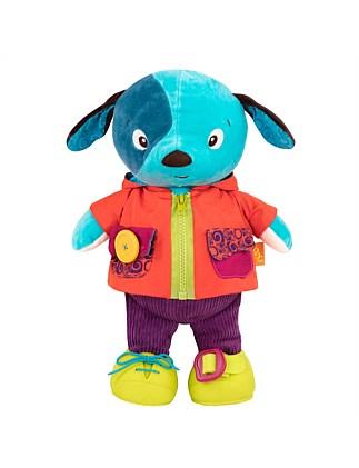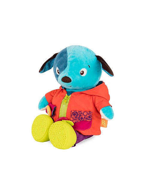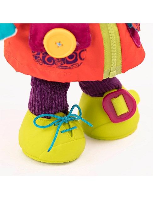 This sensory development toy wiggles, giggles with texture and sound to entertain your young one! Tons of discoveries! Grab, Zip and Snap. Perfect for tiny hands.