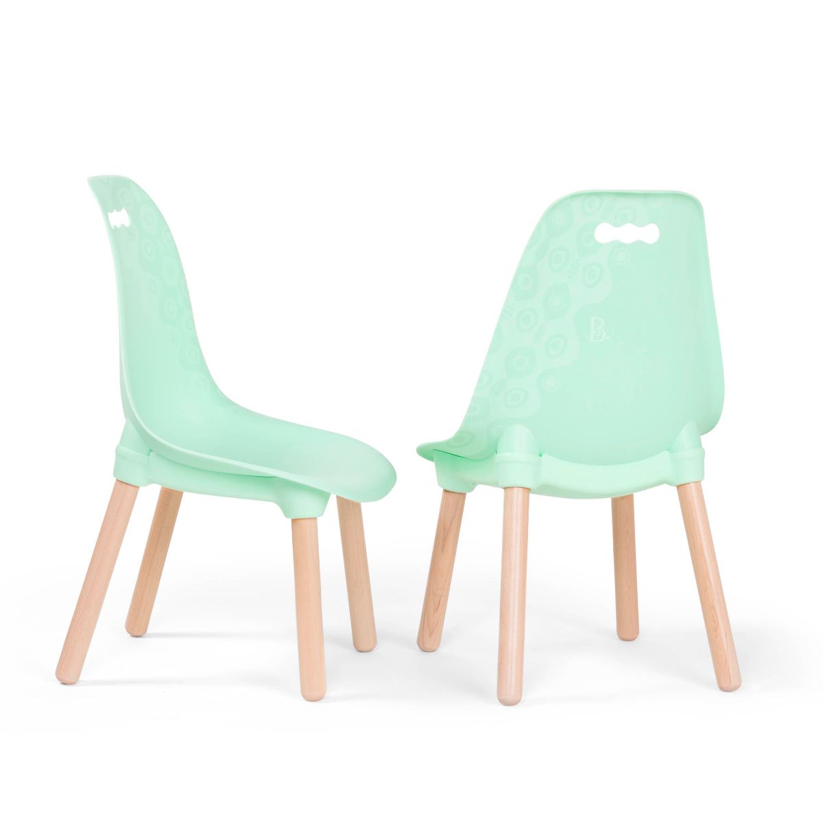 Sit on two little seats and rest your feet with the Kid Century Modern: Chair Set from B. spaces! Sized just right for toddlers or children a little older, this trendy and comfy kids' furniture set is sure to jazz up any space. These mint-coloured chairs can be quickly set up for play time, craft time, tea time, and anything-you-want time! Simply screw the legs directly on the chairs, then tighten them for about 30 seconds (or until they stop turning) for maximum stability. It’s that easy! And if ever you want to set up a nook for your little one’s favourite activities – we’ve got you covered! Just add a table and more chairs with our Kid Century Modern furniture from B. spaces (sold separately). Chairs support a maximum weight of 154 lbs (70 kg). Recommended for kids 3 years and older.