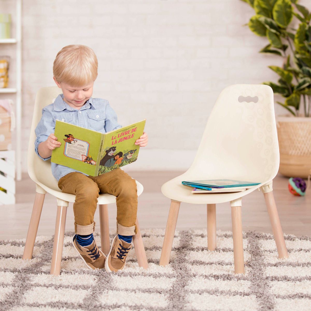 Sit on two little seats and rest your feet with the Kid Century Modern: Chair Set from B. spaces! Sized just right for toddlers or children a little older, this trendy and comfy kids furniture set is sure to jazz up any space. These ivory-colored chairs can be quickly set up for play time, craft time, tea time, and anything-you-want time! Simply screw the legs directly on the chairs, then tighten them for about 30 seconds (or until they stop turning) for maximum stability. It’s that easy! And if ever you want to set up a nook for your little one’s favorite activities – we’ve got you covered! Just add a table and more chairs with our Kid Century Modern furniture from B. spaces (sold separately). Chairs support a maximum weight of 154 lbs (70 kg). Recommended for kids 3 years and older.